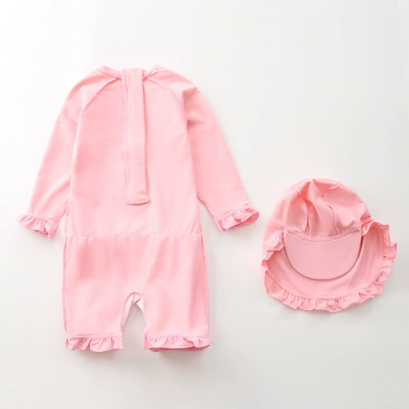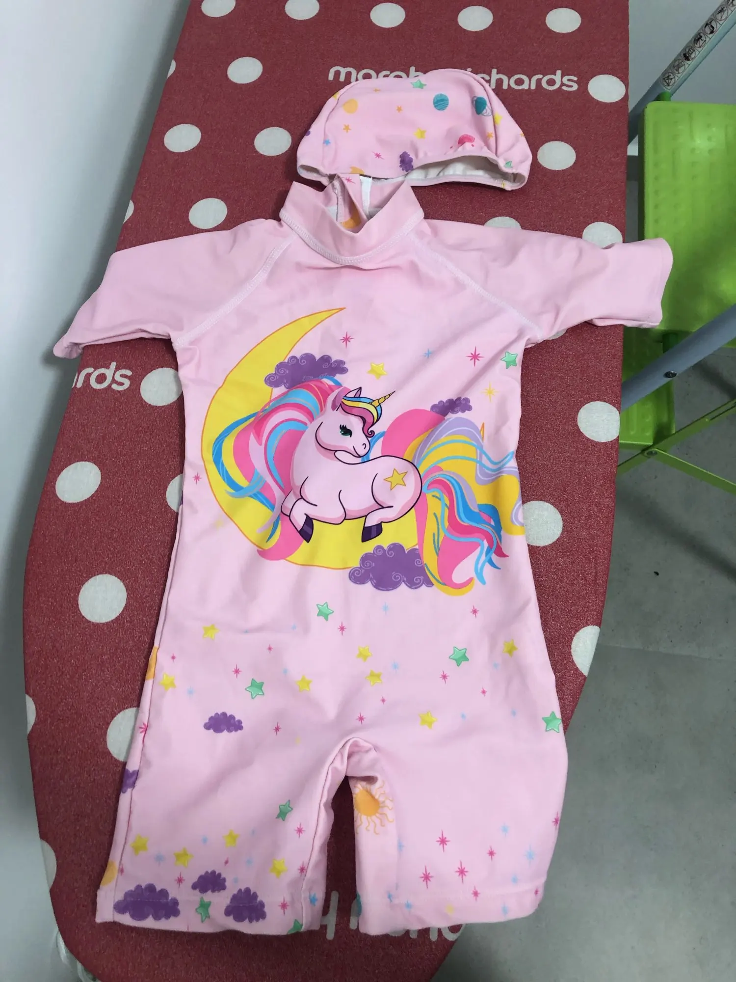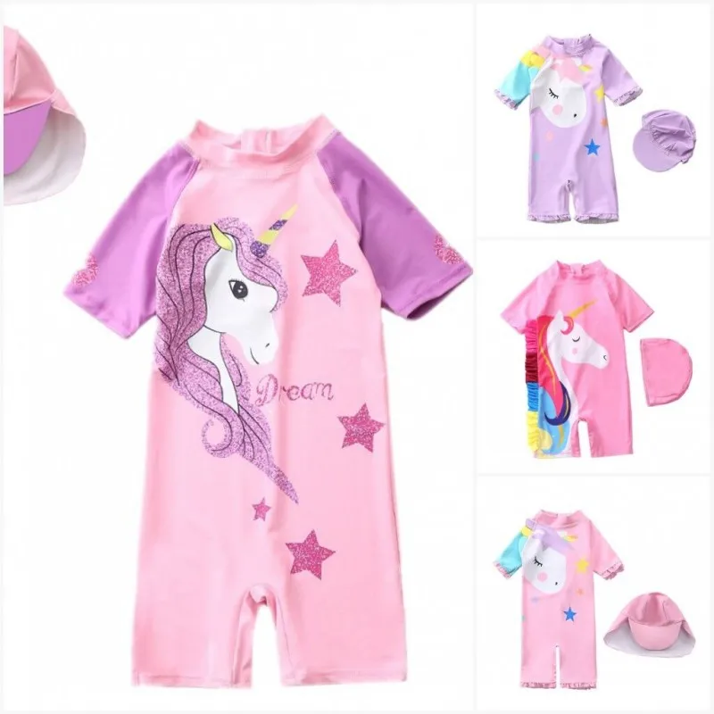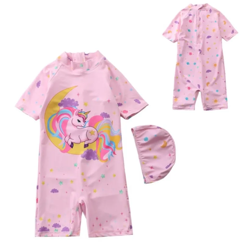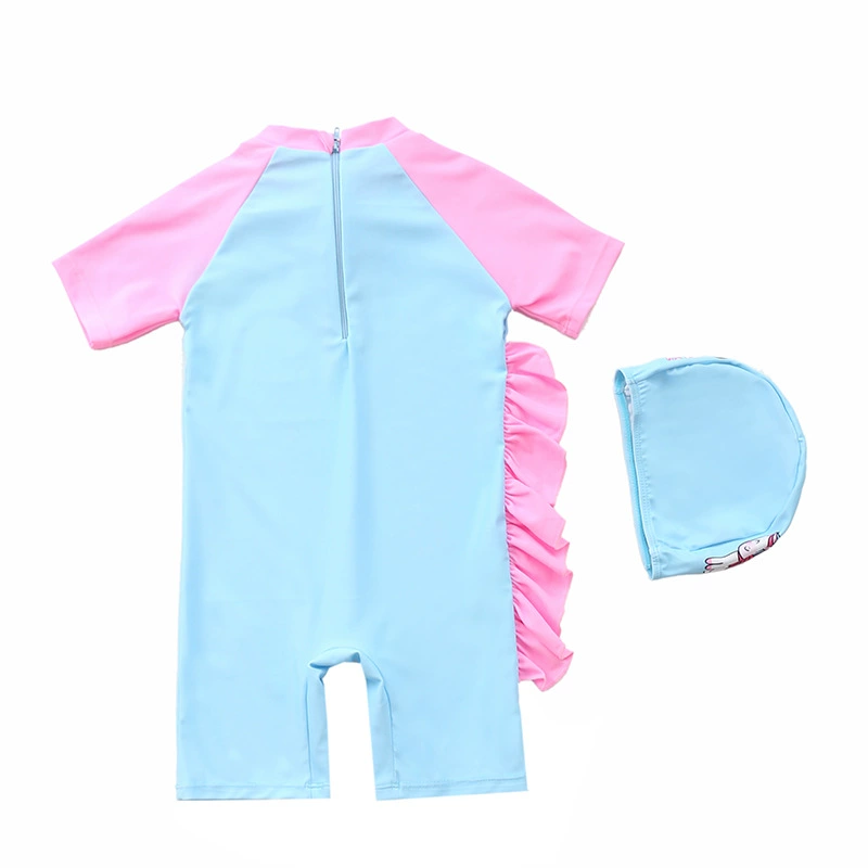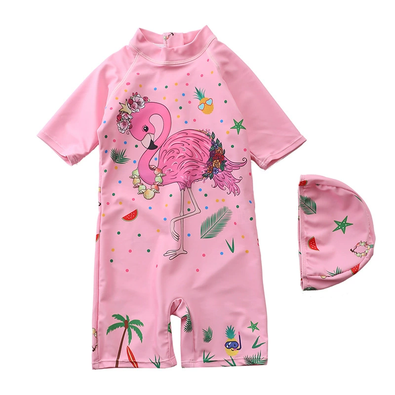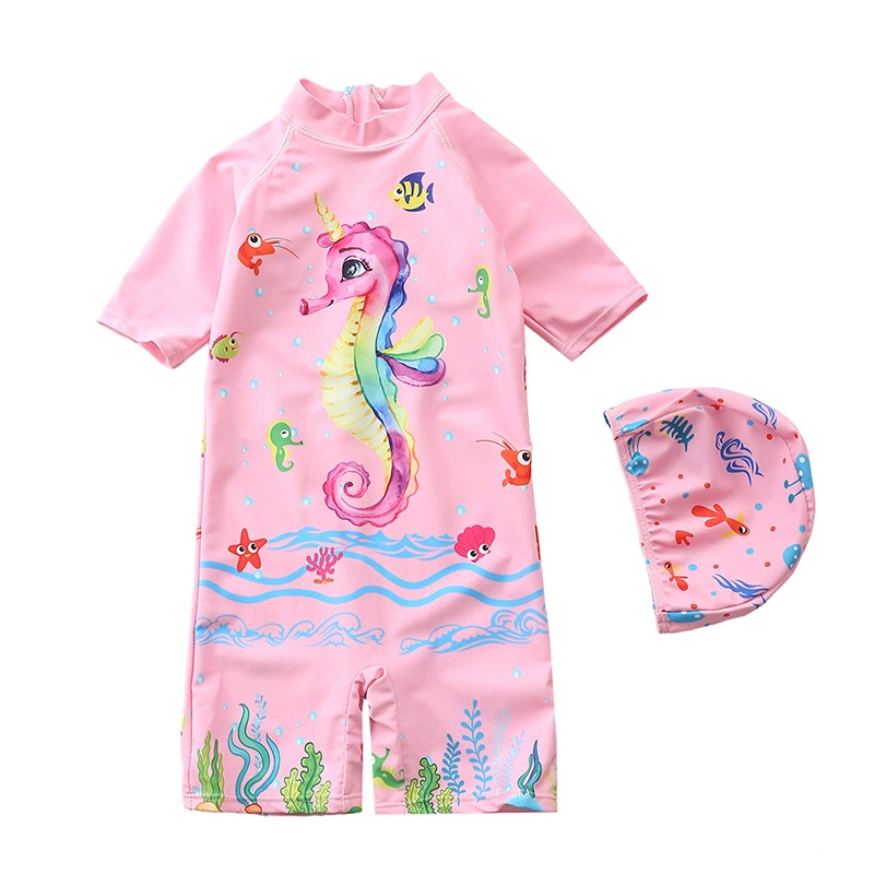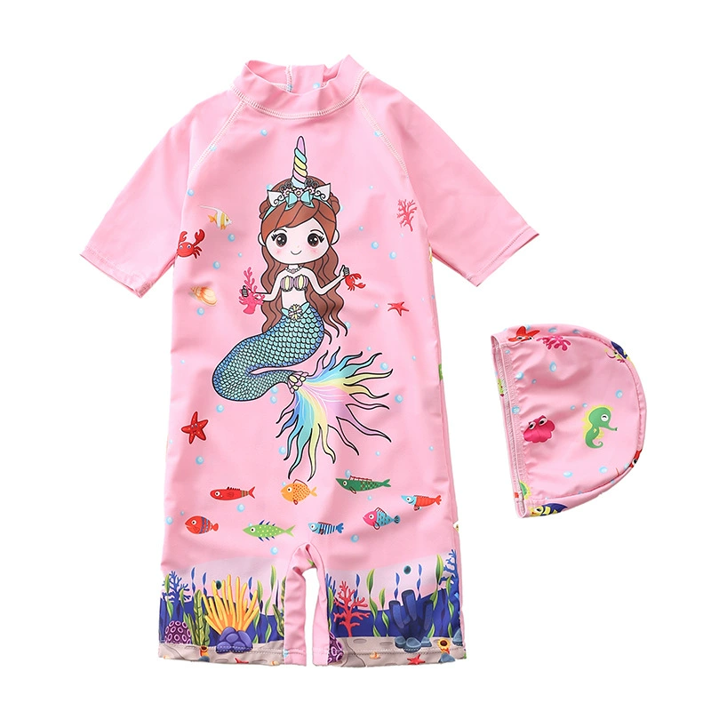 Купальник детский для девочек, слитный купальный костюм розового цвета с коротким рукавом и УФ-защитой, одежда для плавания, пляжная одежда