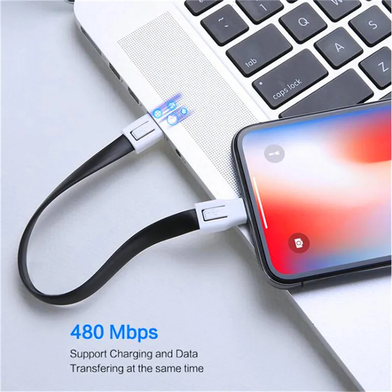 Короткий Мини USB-кабель с брелоком, провод для быстрой зарядки, Micro USB Тип C для iPhone, iPod, Android, зарядное устройство, кабели для синхронизации данных, шнур