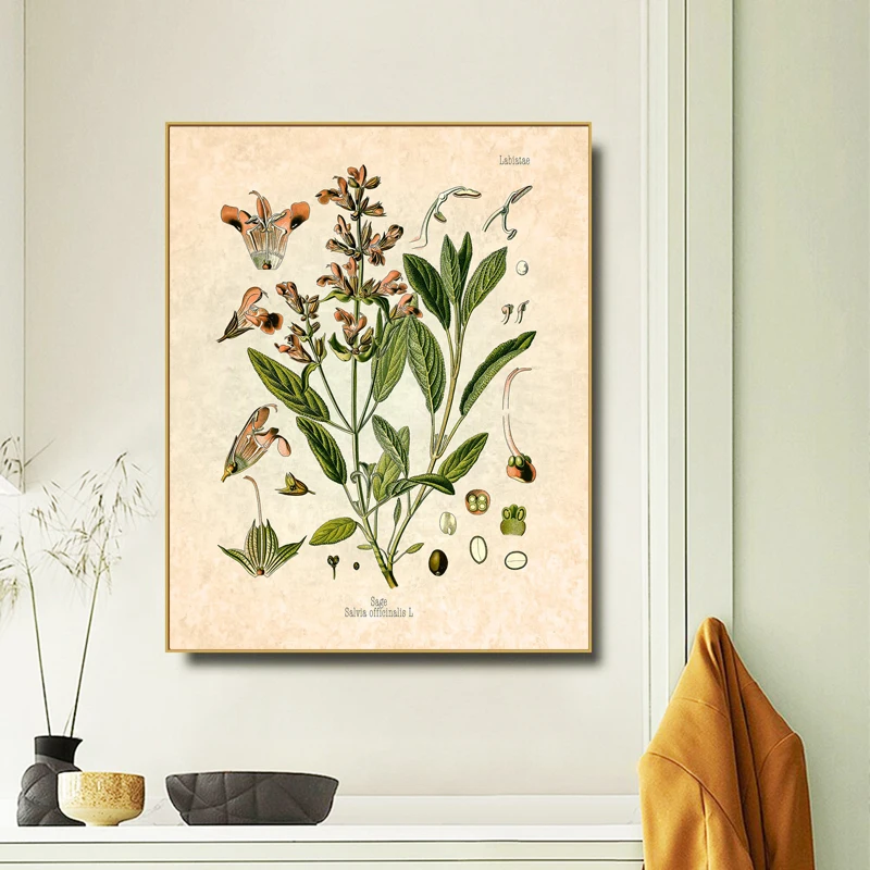 Винтажный цветочный постер с изображением специй, трав, петрушки, шалфея