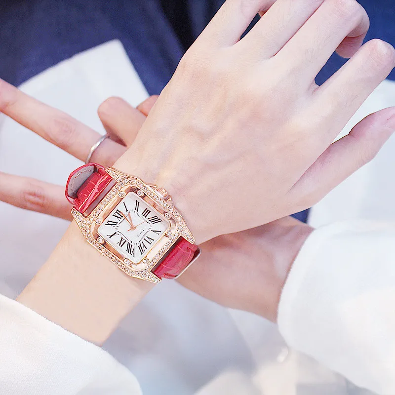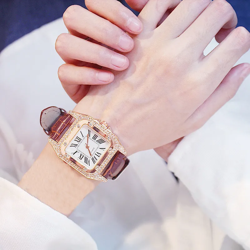 Часы наручные женские кварцевые с квадратным циферблатом, Роскошные...