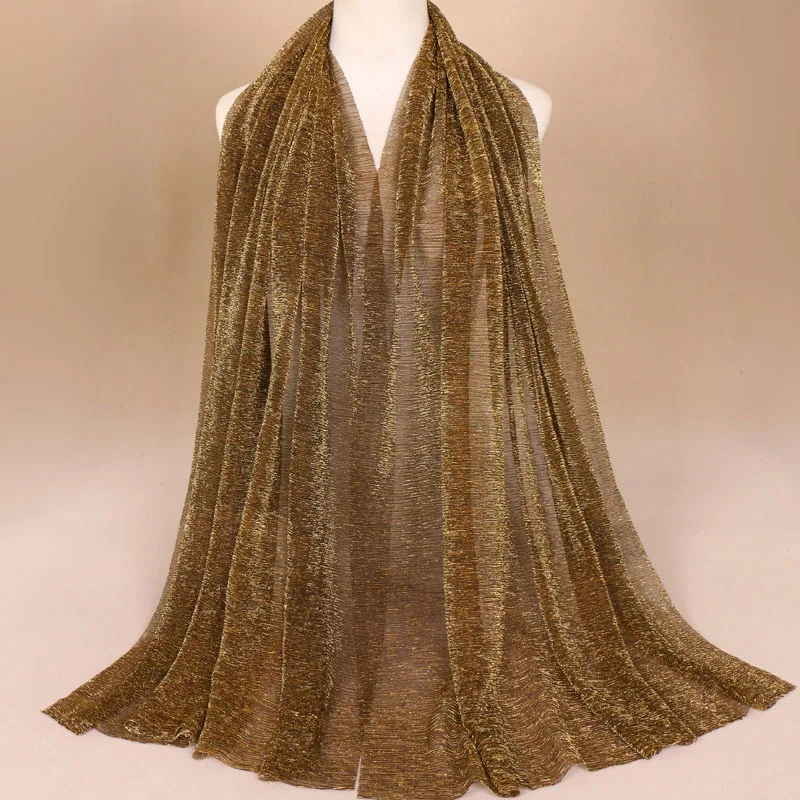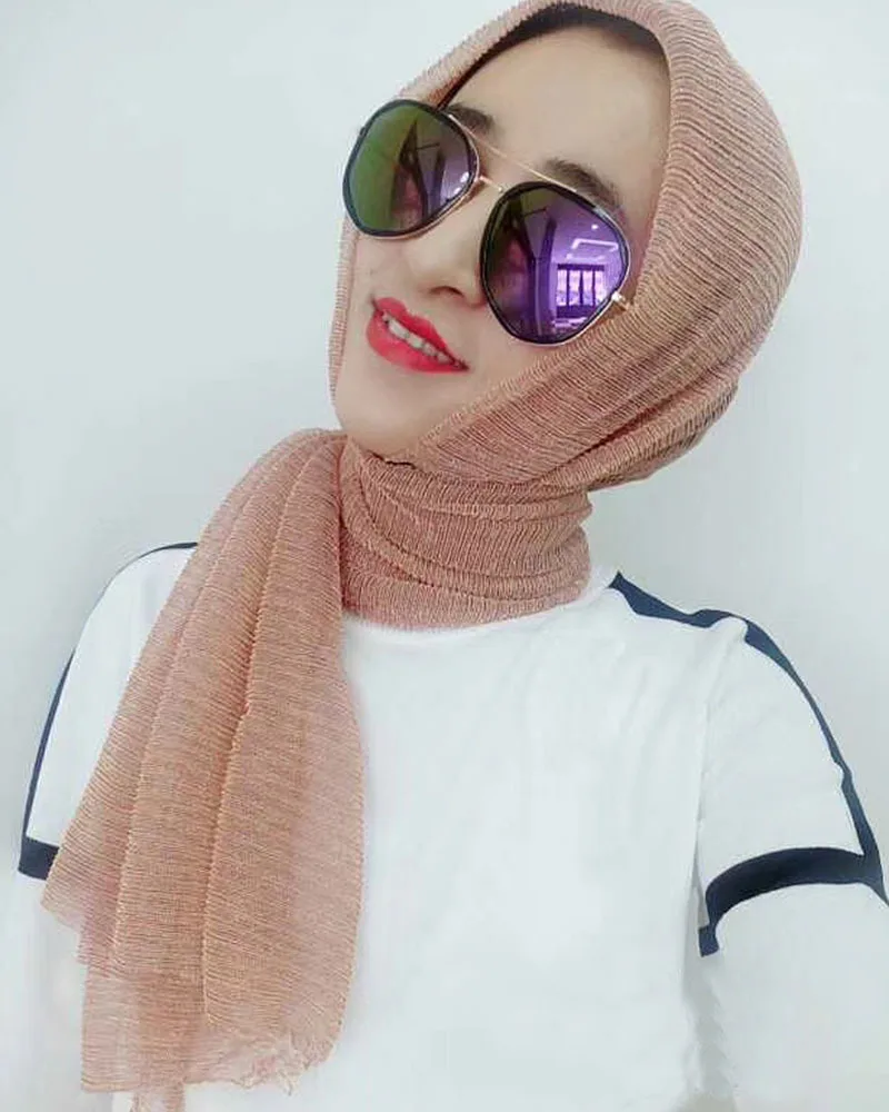 Новый Блестящий шарф с пузырьками, женский длинный мусульманский хиджаб, шарф-тюрбан, головная повязка, женские мягкие плиссированные шарфы