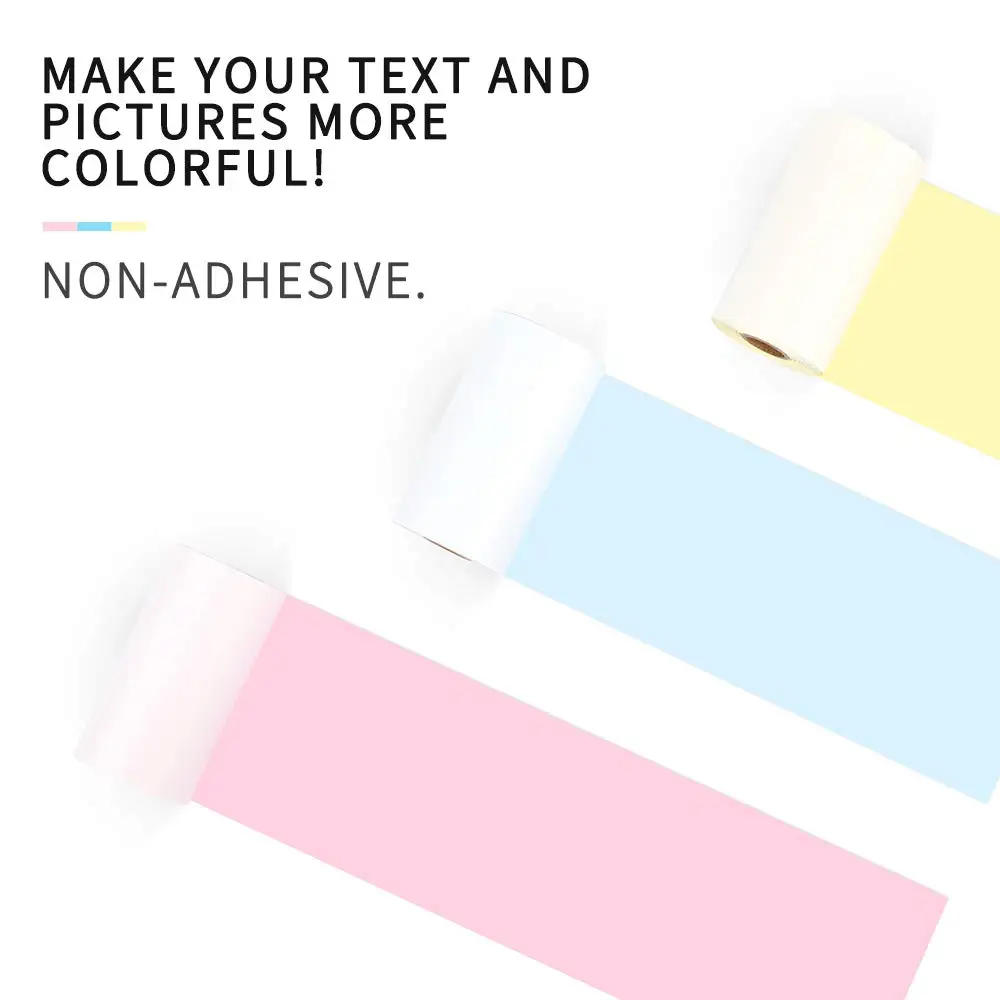 Красочные Термальность Бумага для Phomemo-M02/M02S Карманный принтер, черного цвета с рисунком на желтый/синий/розовый, неклеевой, 53 мм x 6,5 м, Диаметр 30 мм, 3 рулонов