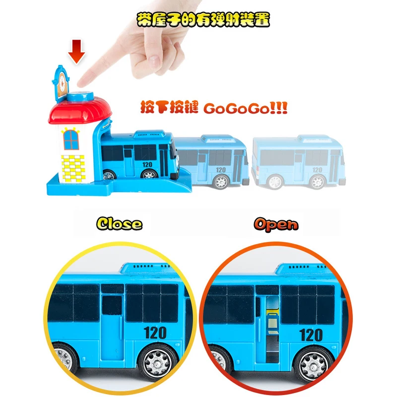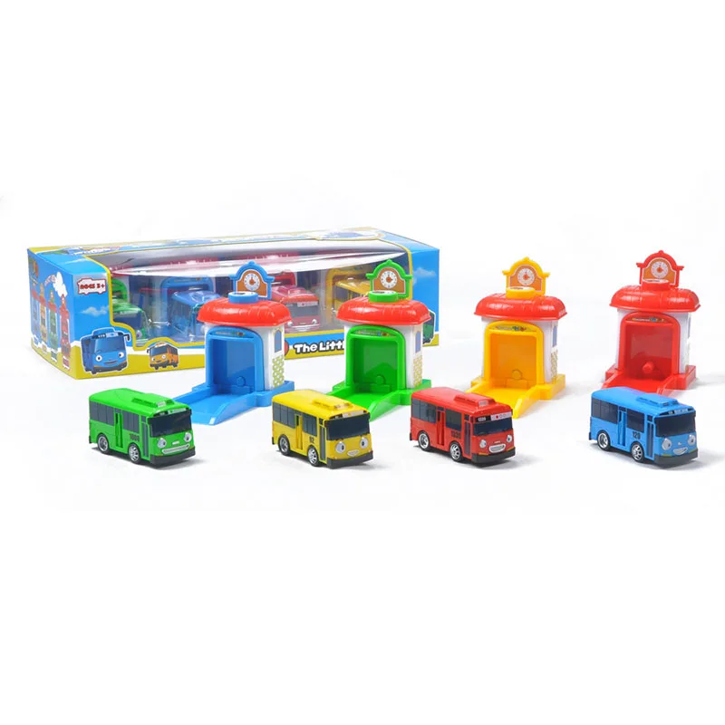 4 шт.компл., Корейская мультяшная масштабная модель автобуса тайо, маленький миниатюрный пластиковый автомобиль для мальчиков, игрушечный гараж