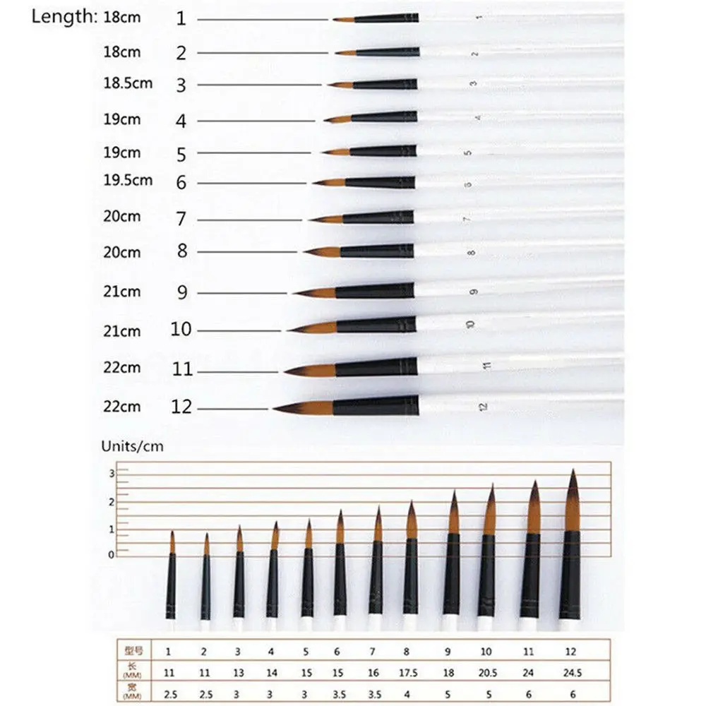 12 шт.компл. художник набор кистей для рисования Акриловая картина маслом масло живопись Ремесло Искусство модель товары для рукоделия