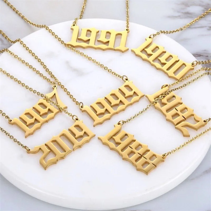 Ожерелье с подвеской цифры из нержавеющей стали, от 1985 до 2020