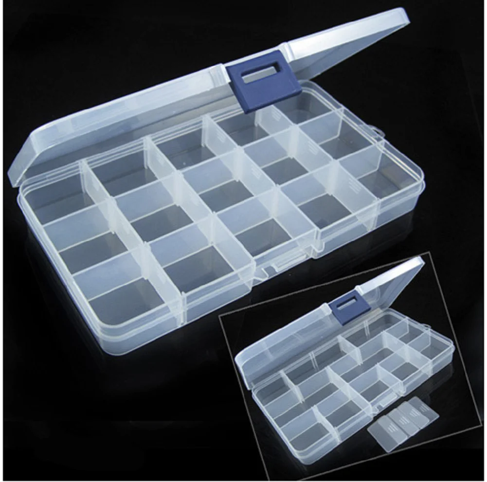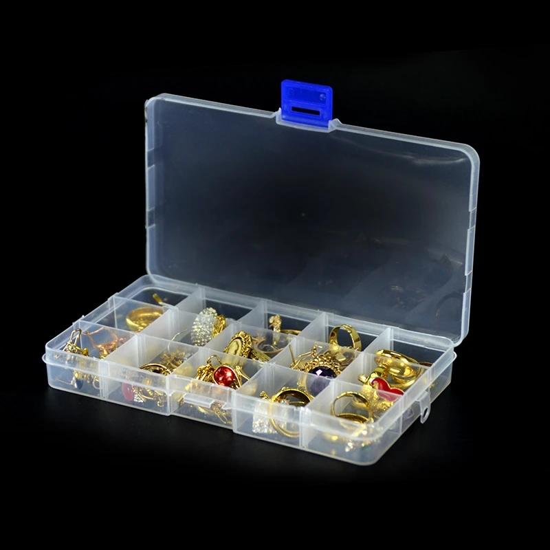 Регулируемый Чехол для хранения ювелирных изделий, 15 ячеек, прозрачный контейнер для лекарств, пилюль, кольцо, серьги, бисер, монета пластиковая коробка для органайзера, дорожный контейнер
