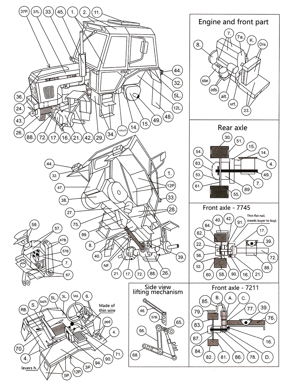 Трактор Zetor 7745 1:32, 4 инструмента на выбор, 3D бумажная модель...