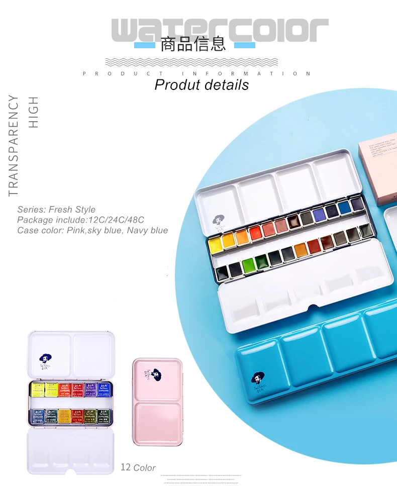 Пигмент для рисования в металлической коробке, твердый, акварельные краски в наборе 122448 цветов