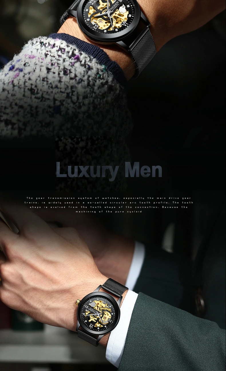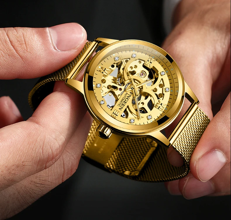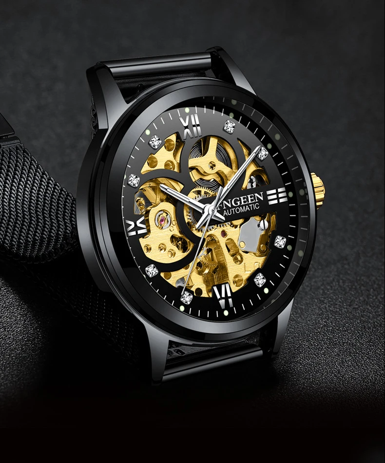 FNGEEN автоматические механические сетчатые мужские часы, мужские ч...
