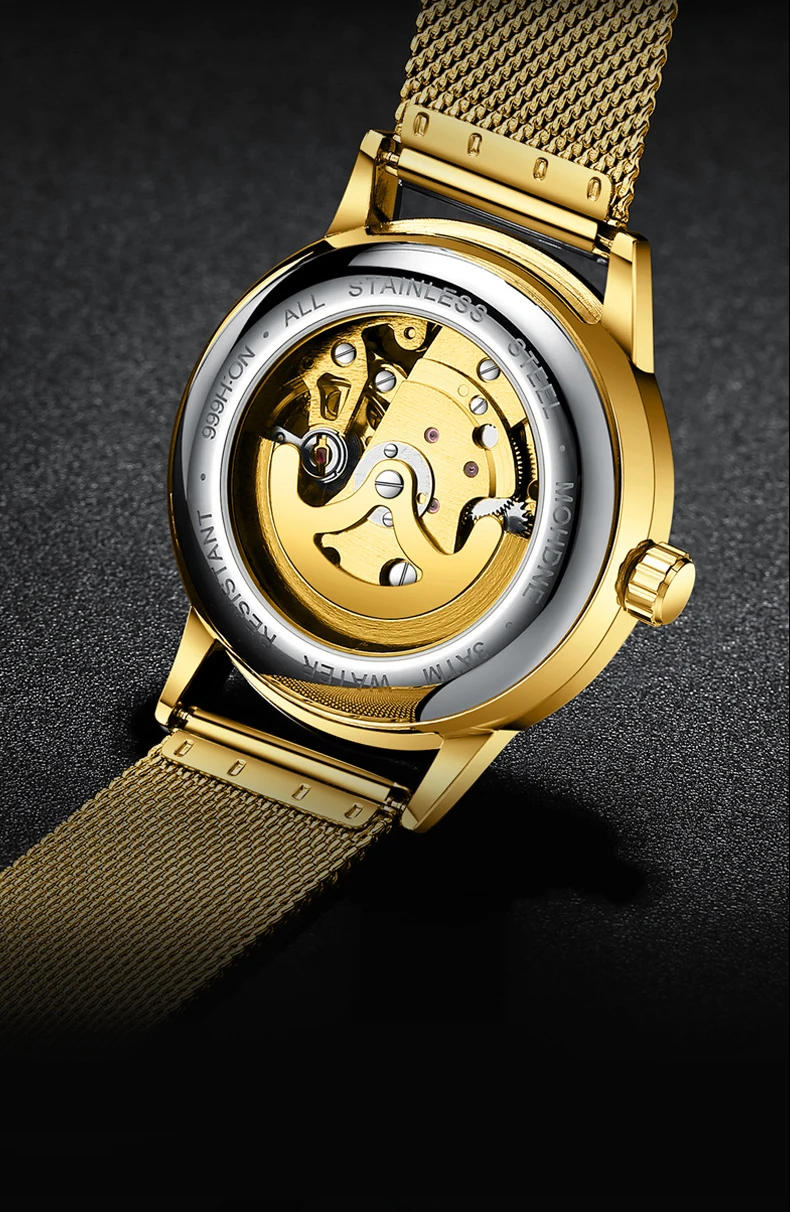 FeaturesGold Tourbillon skeleton automatic mechanical watch