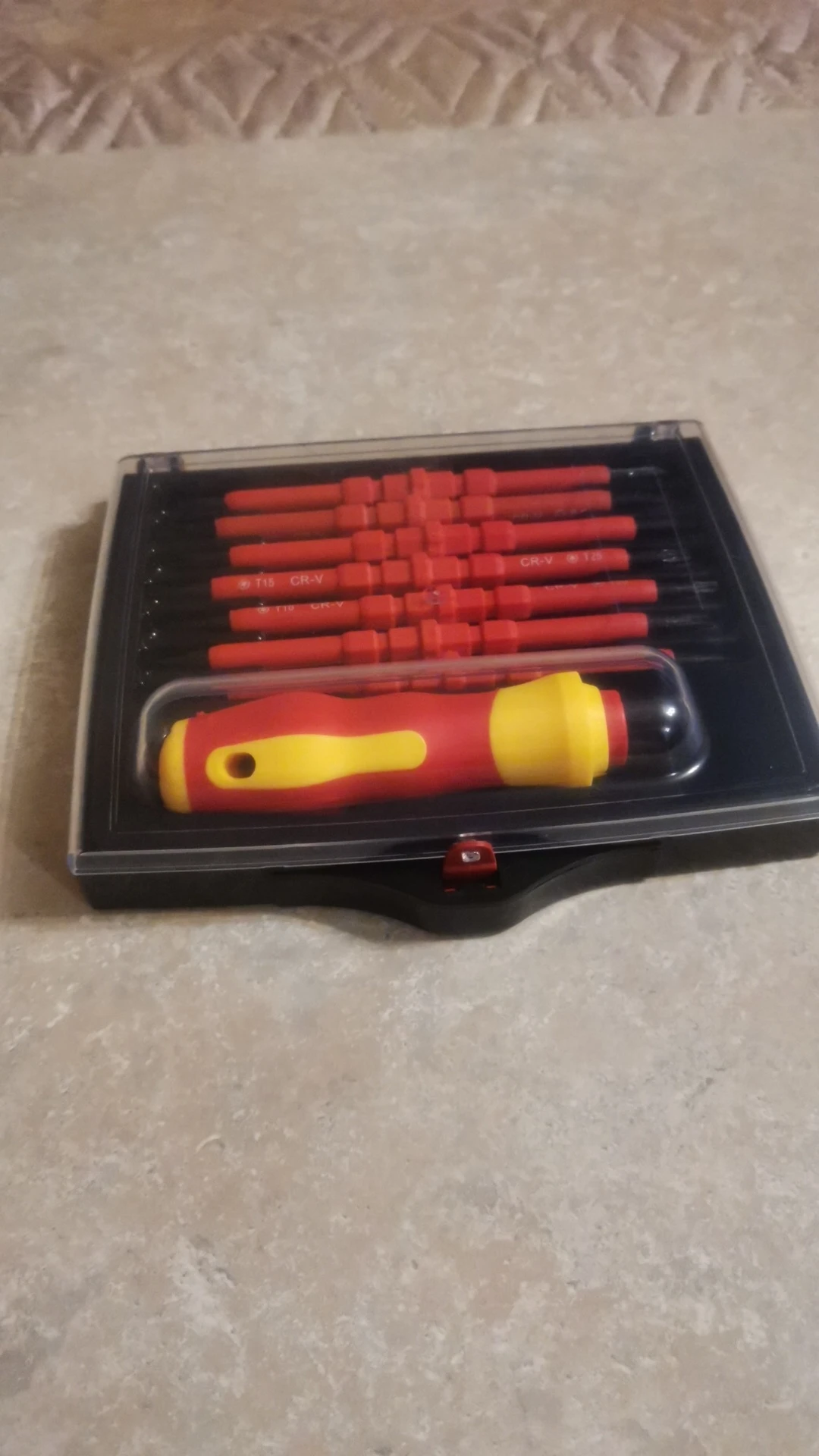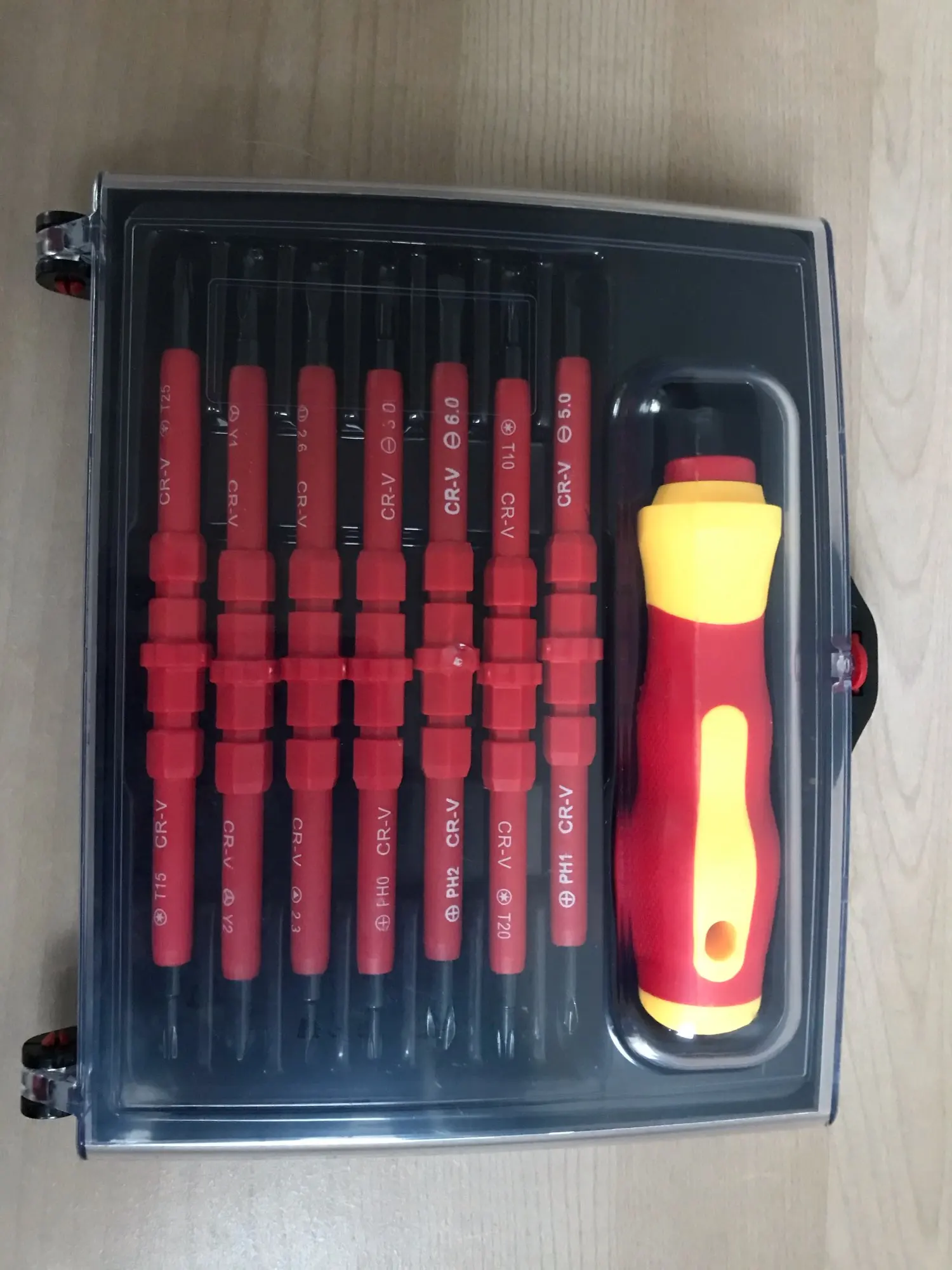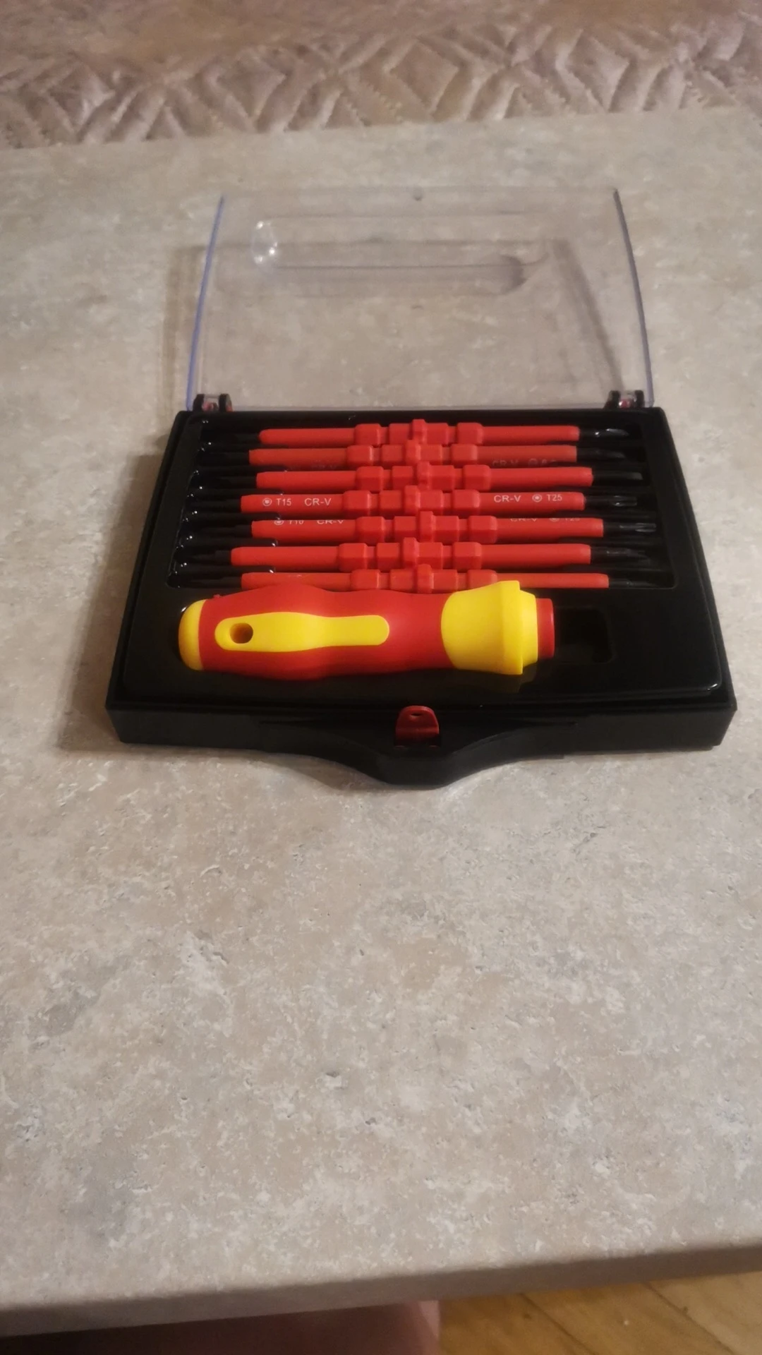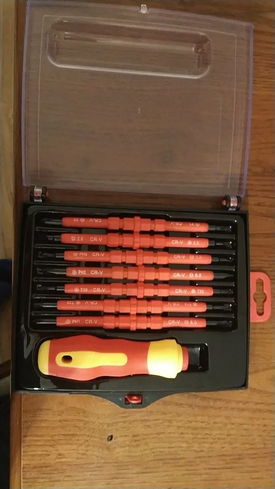 Достаточно приличные отвёртки на первый взгляд, всё аккуратно, не пахнет, на вид надёжно. По фото прозрачный кейс компактнее и оказывается есть ещё вертикальный набор думаю лучше брать его, что бы меньше места занимал.