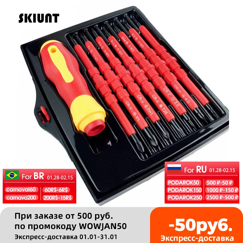 Набор отверток с изоляцией, отвертка, Магнитная отвертка с крестообразным шлицем, держатель отверток для ручных инструментов электрика