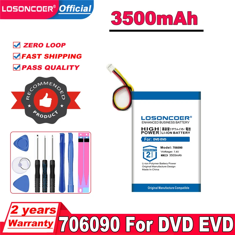 LOSONCOER 3500mAh 706090 076090 батарея для DVD батарея EVD батарея