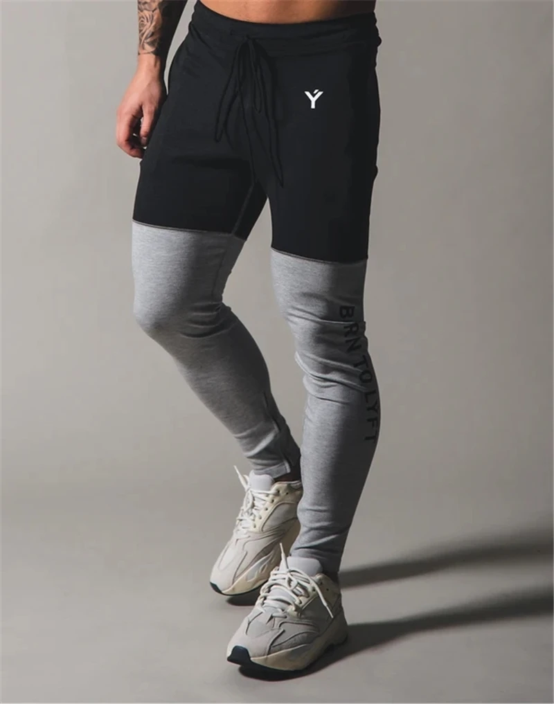 Брюки мужские облегающие, брендовые штаны для бега и фитнеса, тренировочные джоггеры, спортивные тренировочные штаны в стиле пэчворк