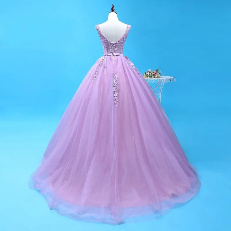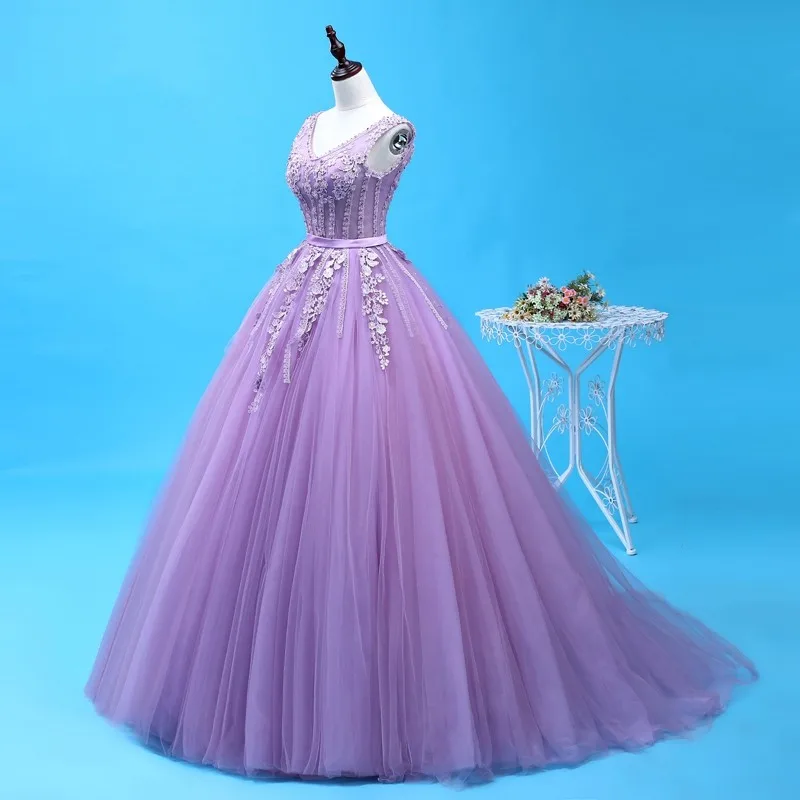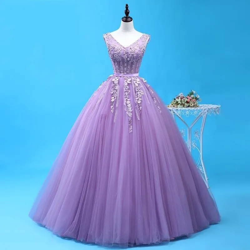 Сексуальное Сиреневое платье Quinceanera с v-образным вырезом, вечерние платья длиной до пола с 3D цветочной аппликацией, 16 платьев для принцесс