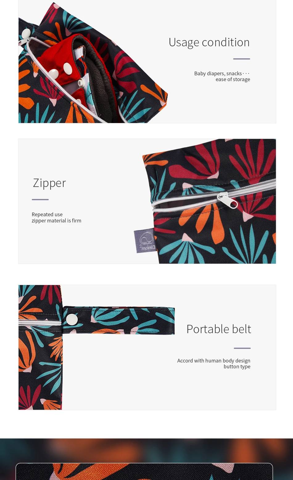 Характеристики: Эта водонепроницаемая сумка используется для закусок, частей, подгузников и т. д. очень удобно носить с собой, когда вы выходите.