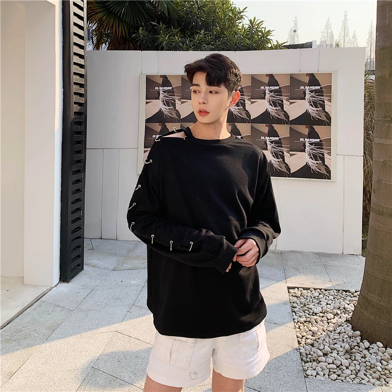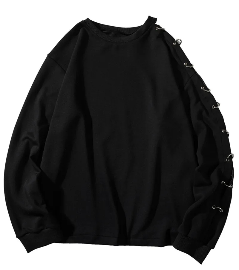 Повседневный пуловер с длинными рукавами и металлическим кольцом для мужчин и женщин, толстовка с капюшоном в стиле хип-хоп для пар, уличная одежда