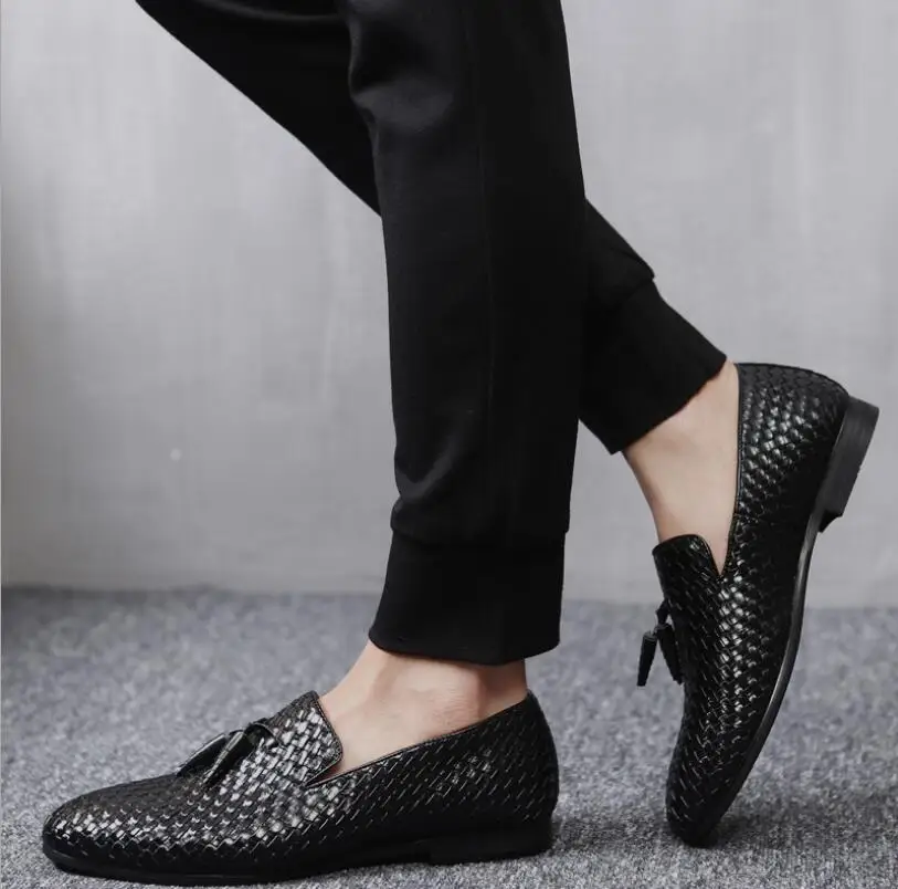Лоферы мужские кожаные с кисточками, большие размеры 37-48