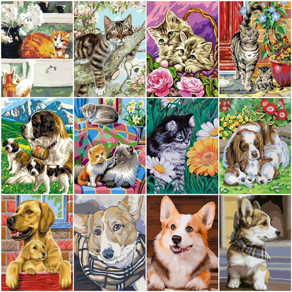HUACAN DIY картинки по номерам наборы для рисования собак на холсте...