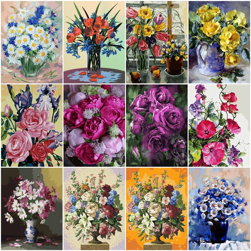 HUACAN картина по номерам цветы ручная роспись Рисование холст набо...