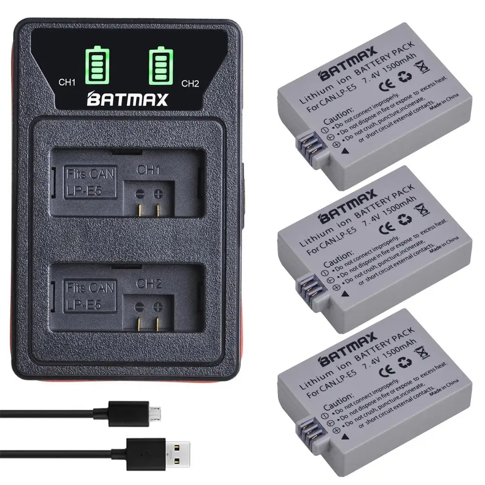 Аккумулятор Batmax LP-E5 LPE5 + новое светодиодное двойное зарядное устройство с портом типа C для Canon 450D 500D 1000D Kiss X2 X3 F Rebel XSi Xli XS L15