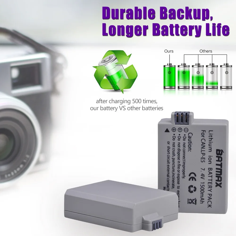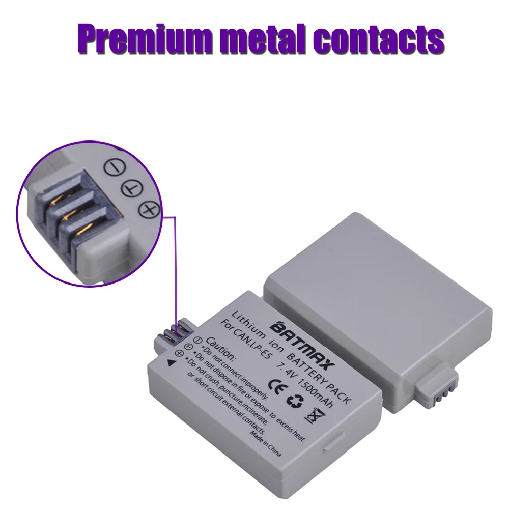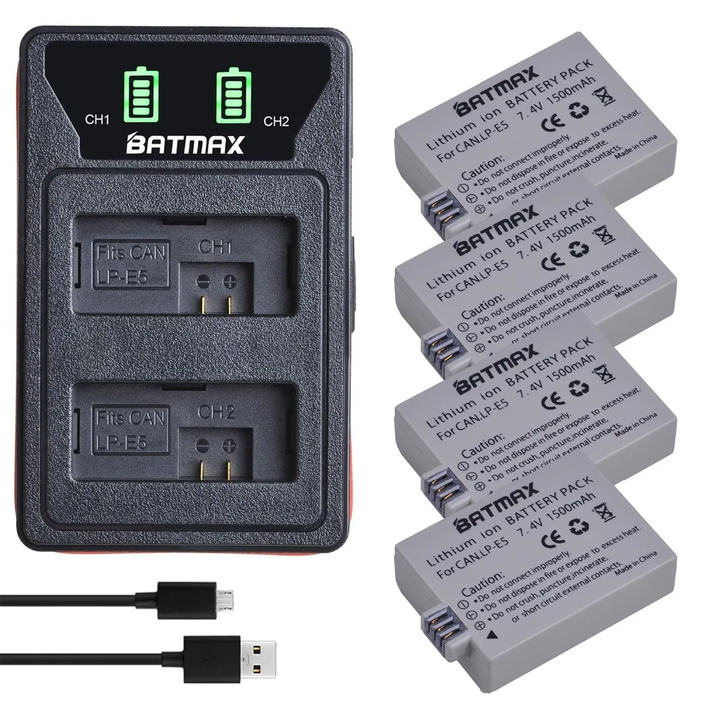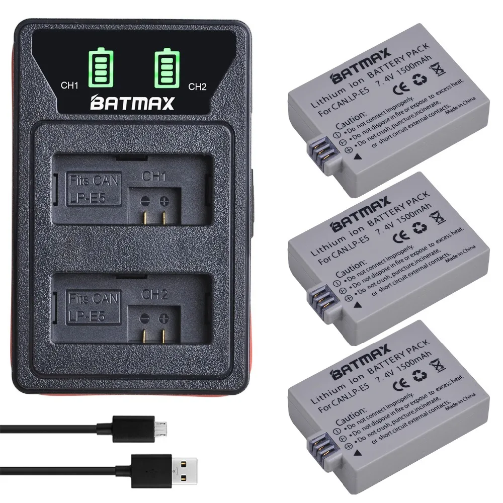 Batmax LP-E5 LPE5 батарея + Новый светодиодный двойной зарядное устройство с портом типа C для Canon 450D 500D 1000D Kiss X2 X3 F Rebel XSi Xli XS L15
