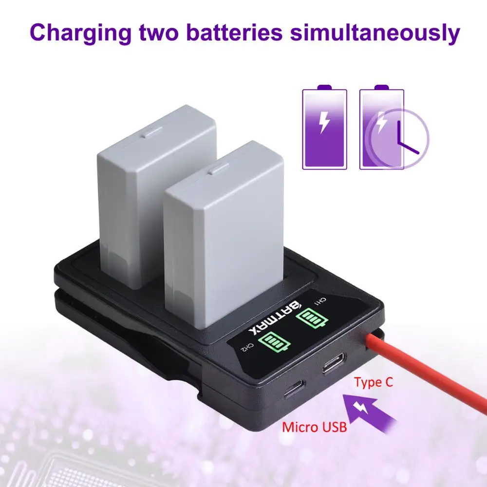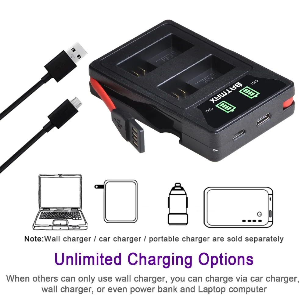 2. Заряжайте две батареи одновременно и независимо.