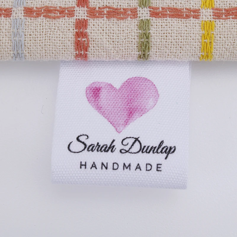 Пользовательские швейные этикетки, брендовые этикетки, розовые в форме сердца, хлопковые Ленточные этикетки, этикетки ручной работы (MD0041)