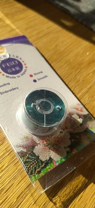 Petit comme une canette de machine à coudre mais le fil semble souple et solide... parfait!