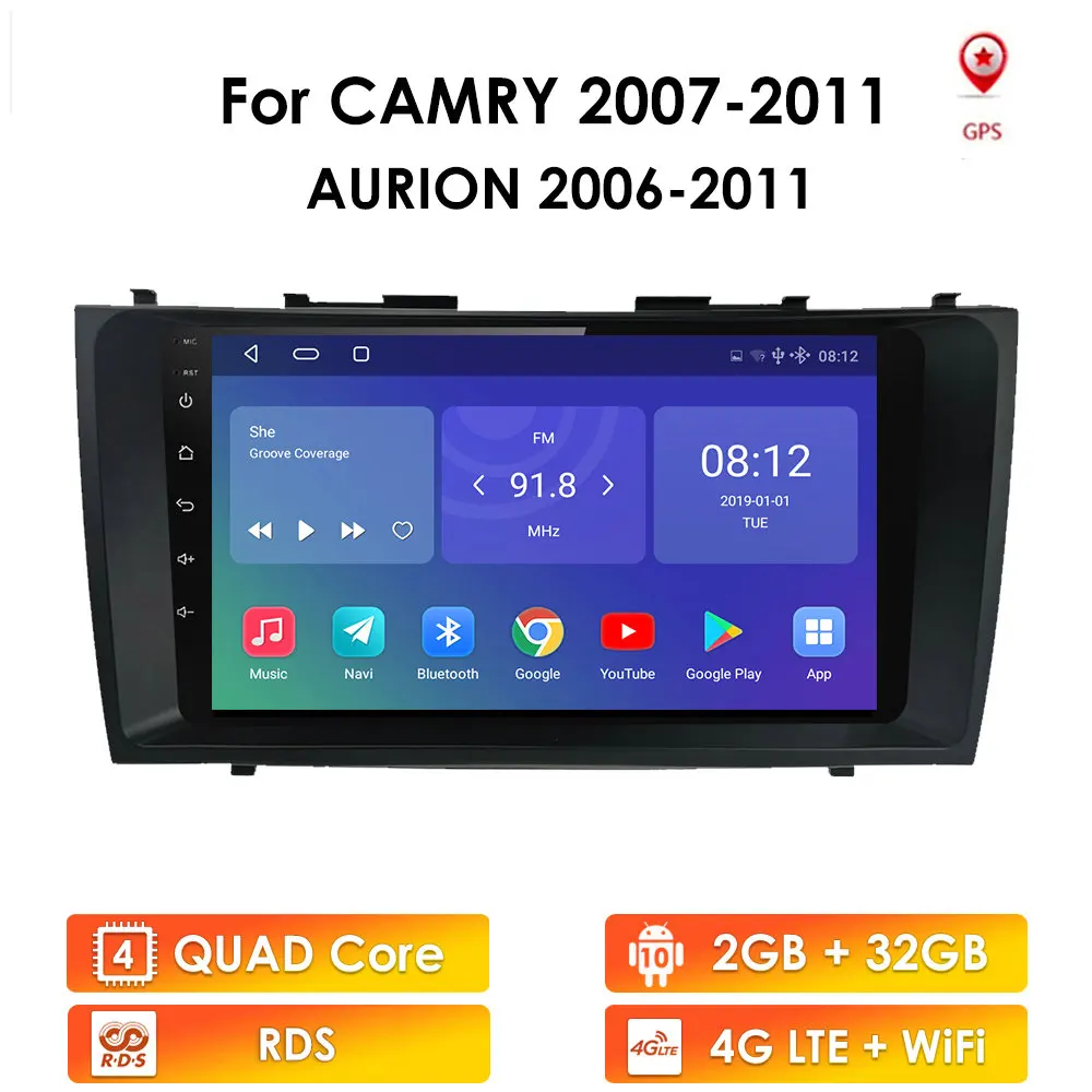 Автомобильный мультимедийный плеер 2DIN Android 10, Автомобильный GPS для Toyota Camry Aurion 2007-2011, 9 дюймов, автомобильное радио, навигация, Mirror Link, головное устройство DAB