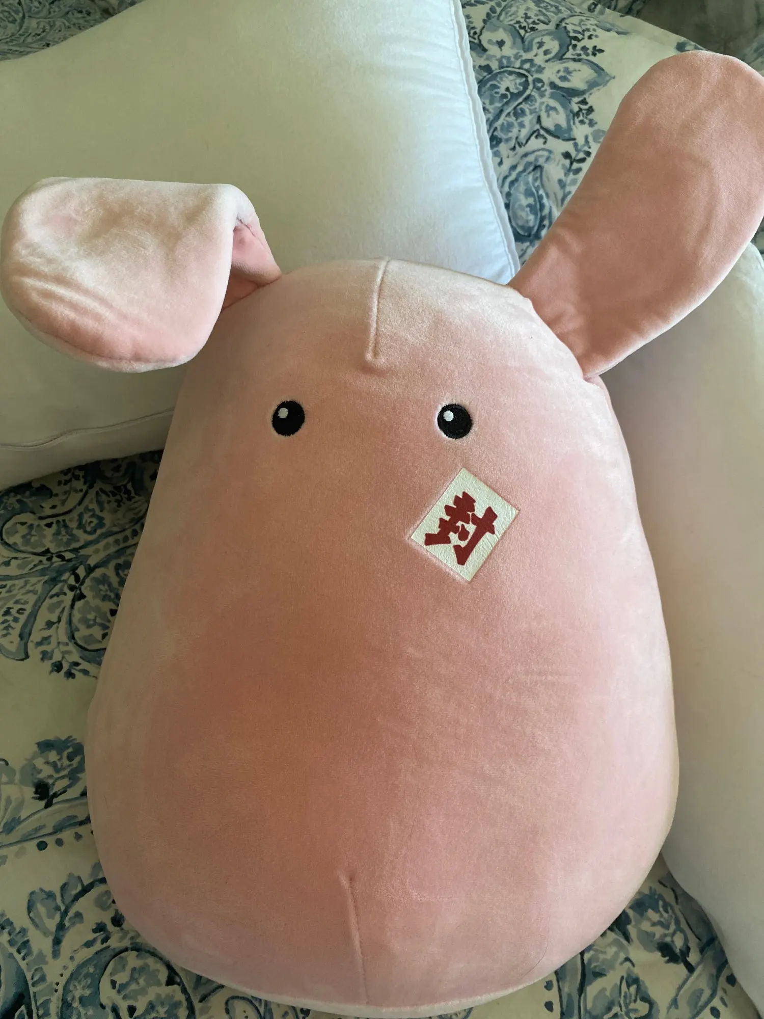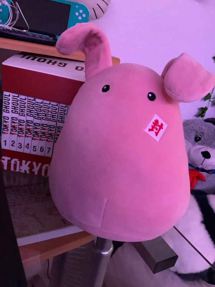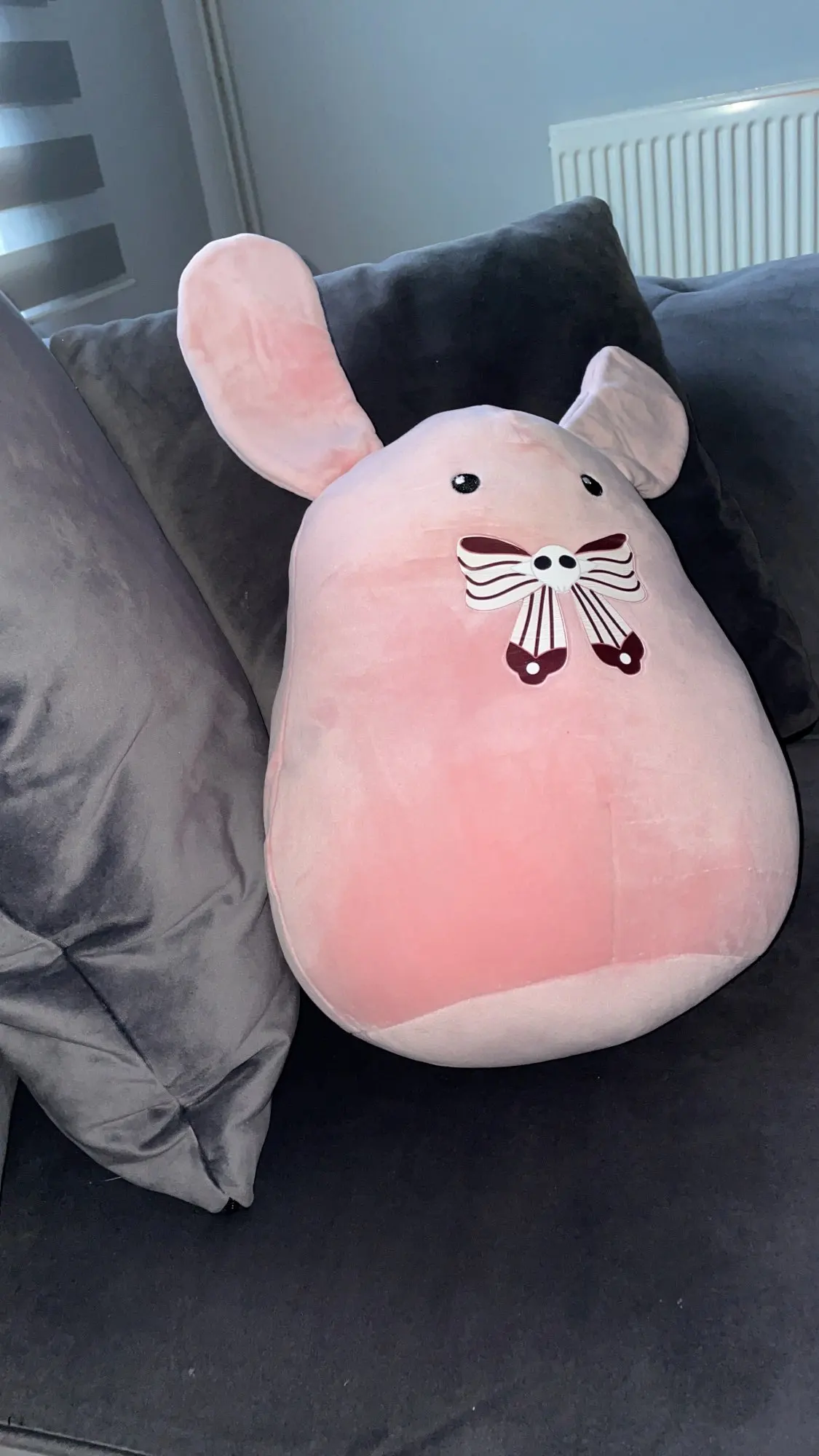 This plush is so soft, cute, and squishy! Great for hugs! The bow design was a little worn upon arrival, but otherwise it's exactly what I was looking for.