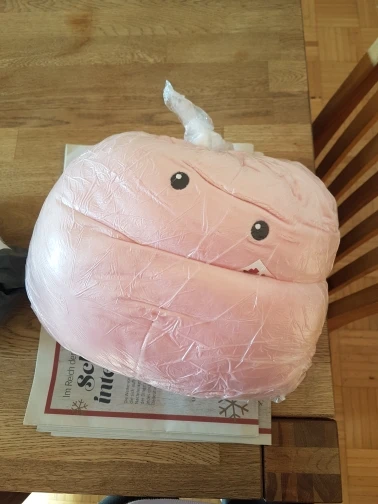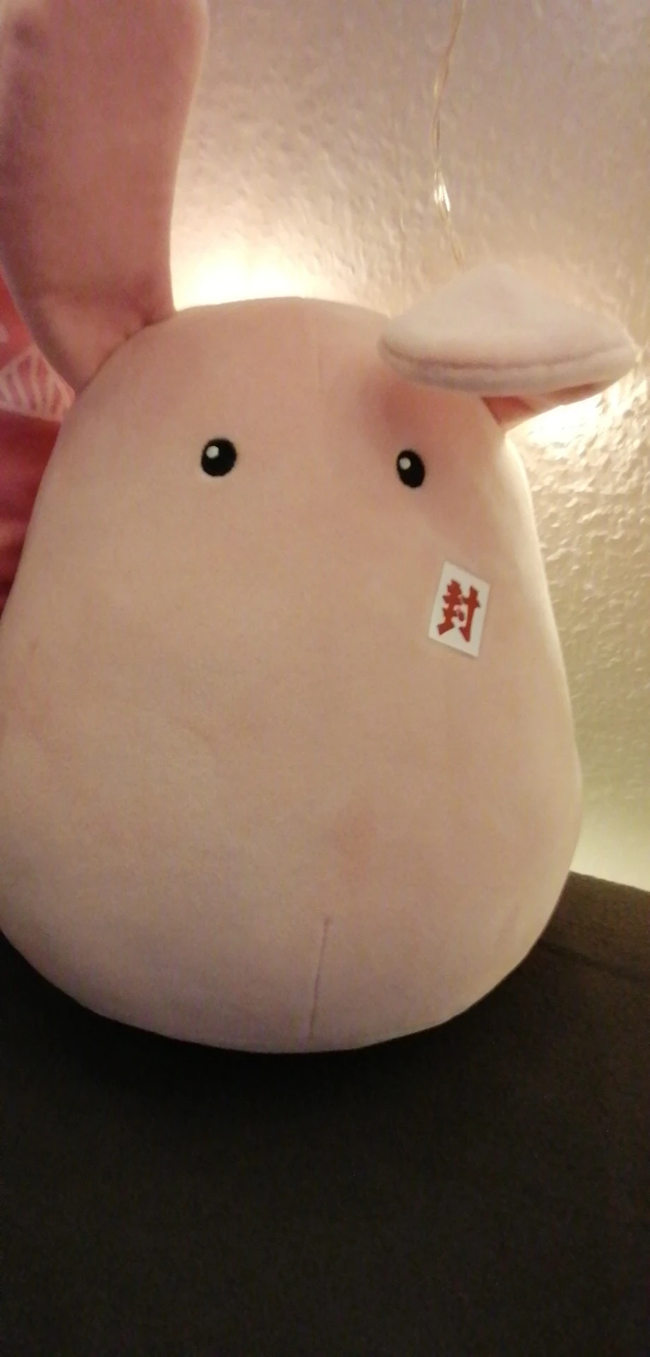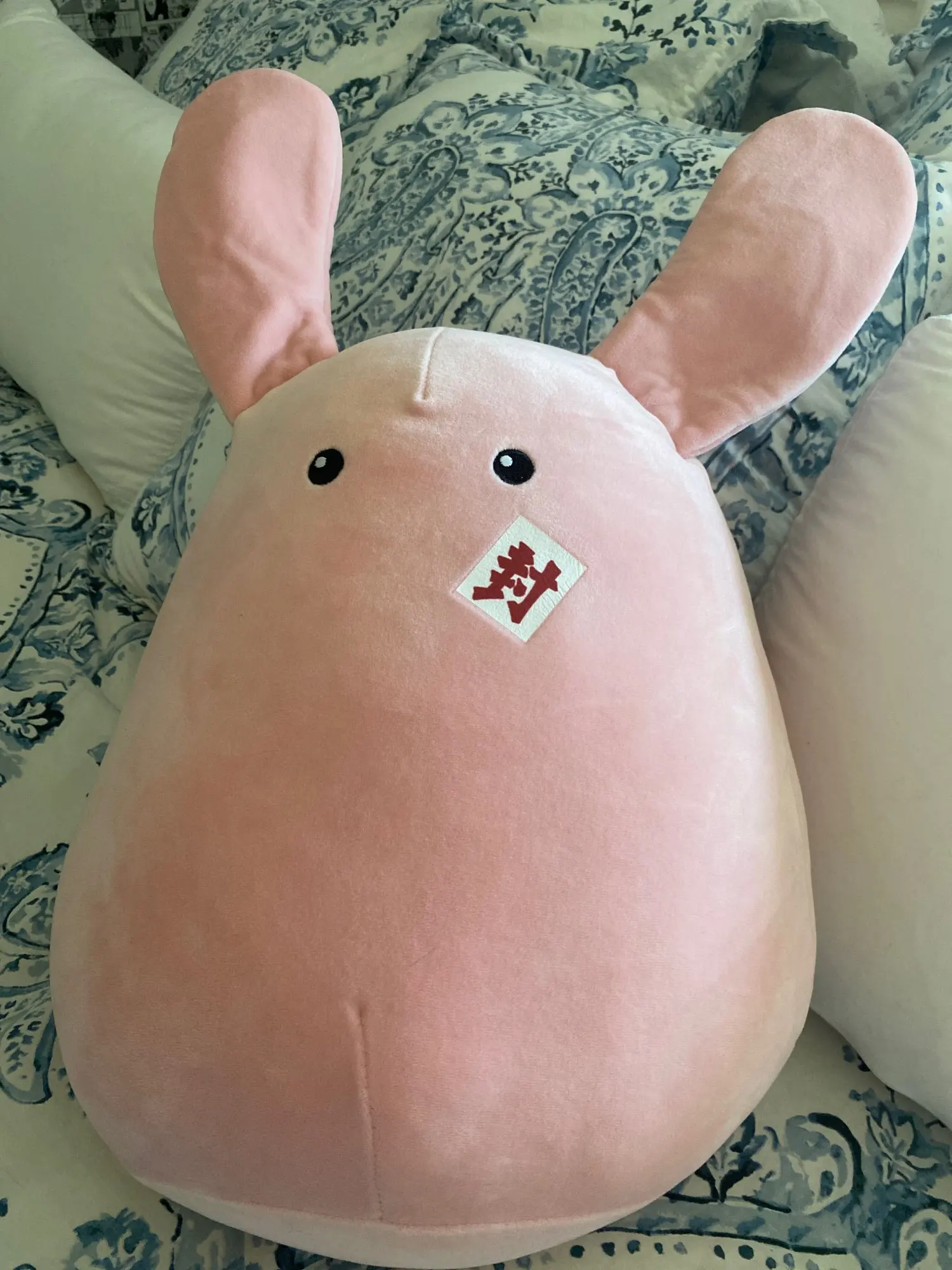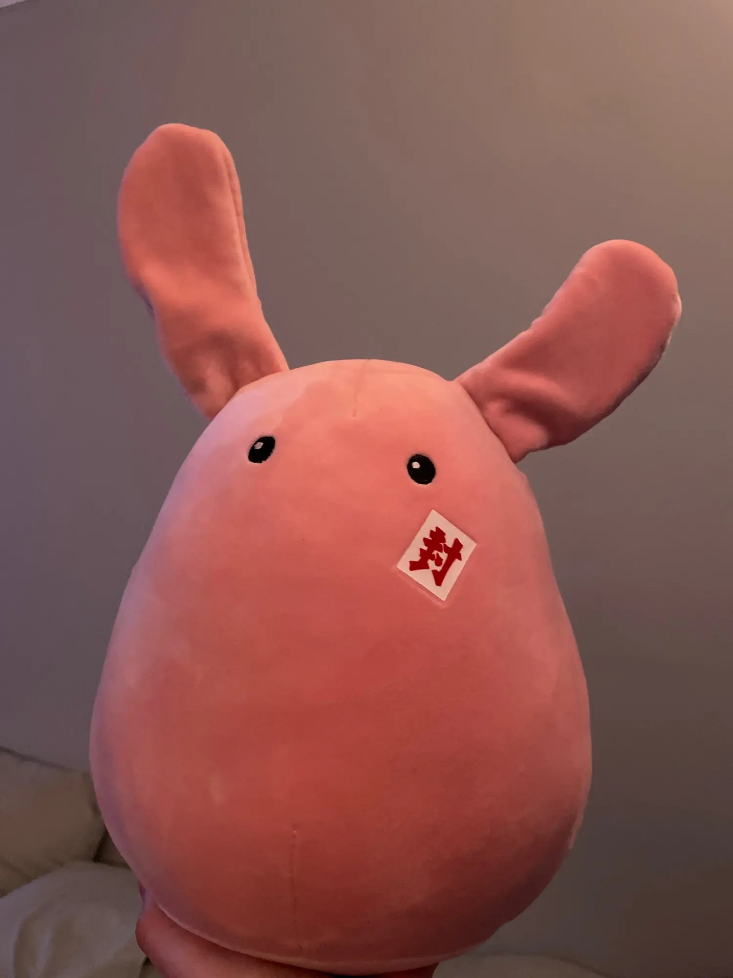 This plush is so soft, cute, and squishy! Great for hugs! The bow design was a little worn upon arrival, but otherwise it's exactly what I was looking for.