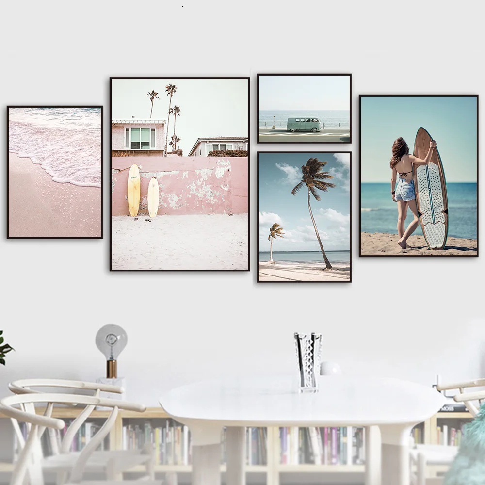 Плакаты и принты скандинавских пейзажей, с изображением пляжа, серфинга, Настенная картина, ВИНТАЖНЫЙ ПЛАКАТ, декоративный Декор для дома