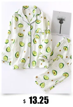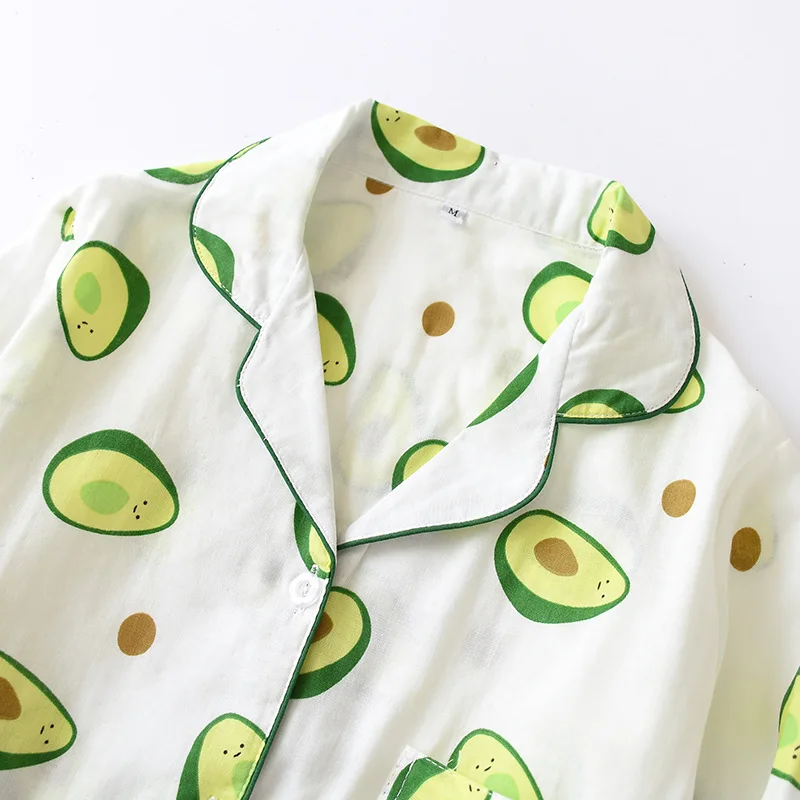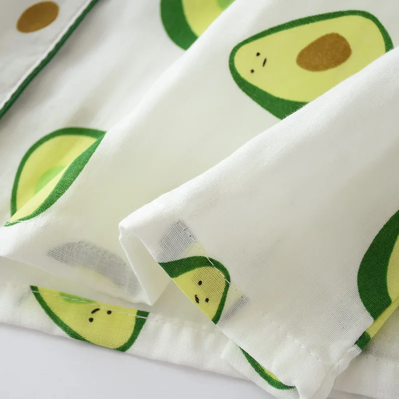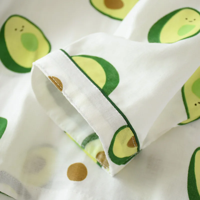 Женский пижамный комплект из 2 предметов, хлопковая одежда для сна с изображением авокадо из мультфильма, женская рубашка + штаны, удобная Пижама для свежего и природного образа