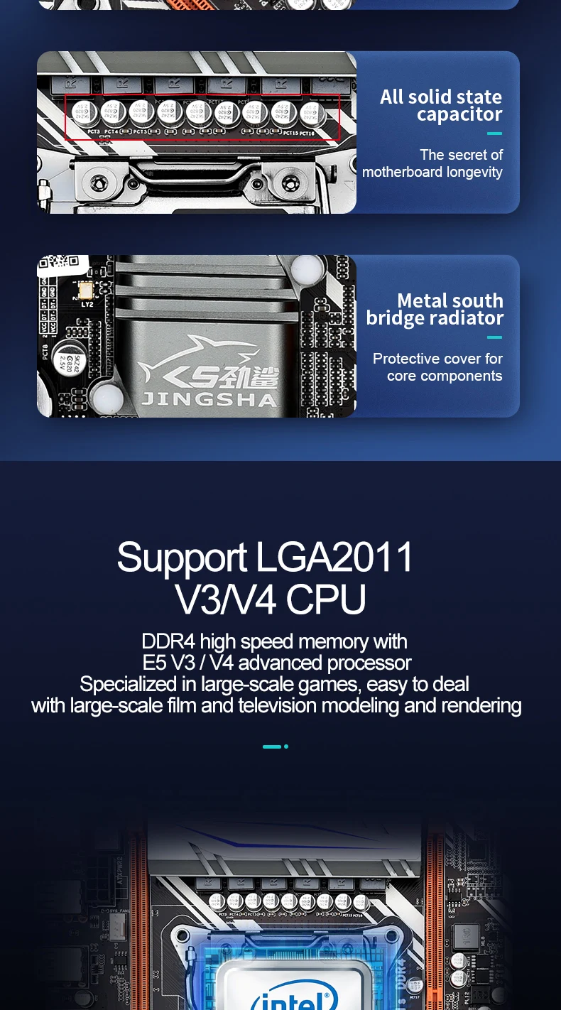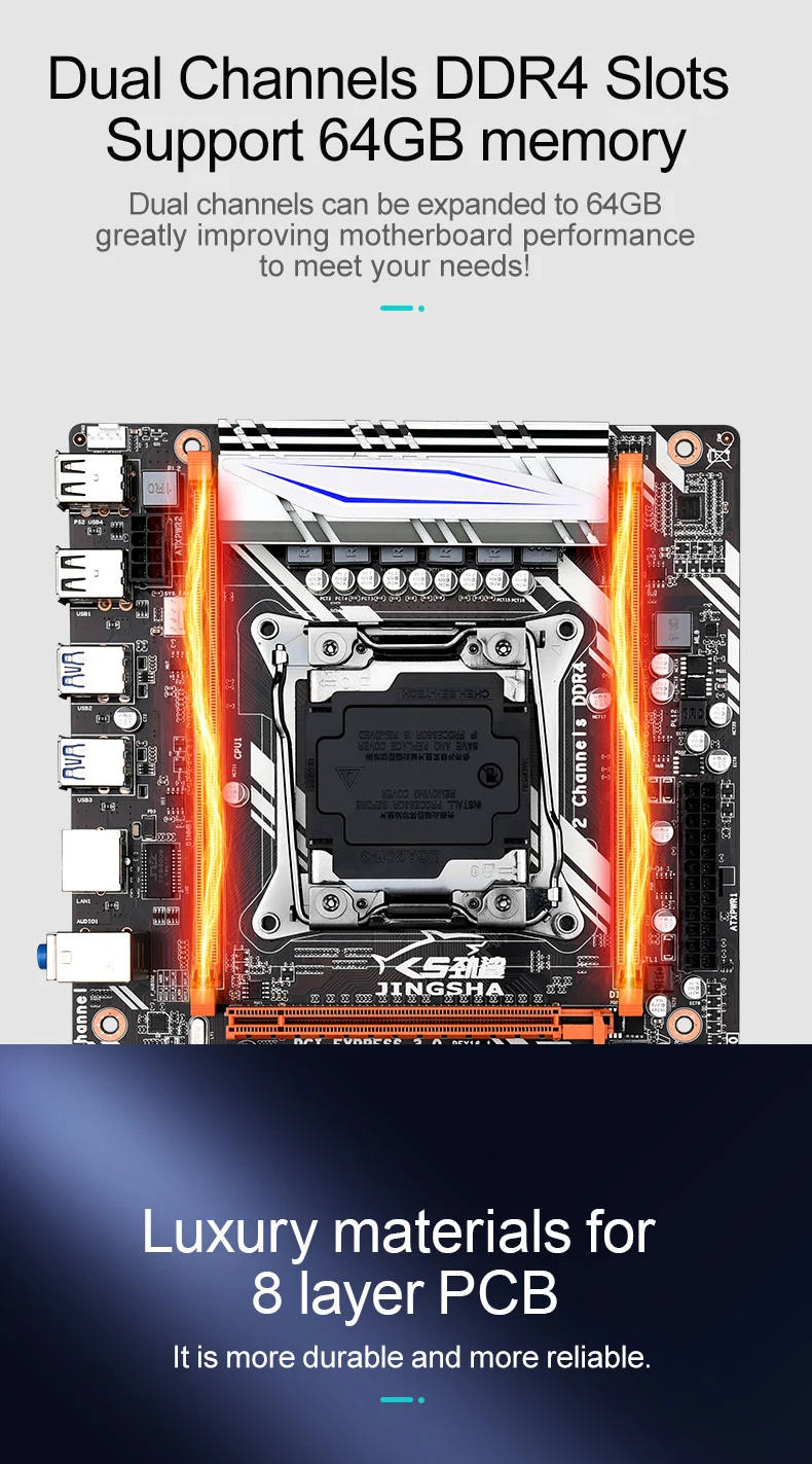 Материнская плата JINGSHA X99 D4 LGA2011 V3V4 M-ATX USB3.0 NVME M.2 WIFI SSD поддержка памяти DDR4 и процессора Xeon E5 V3
