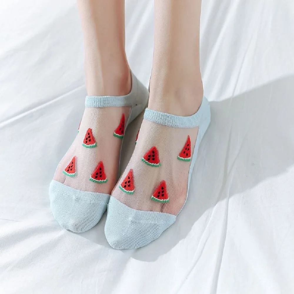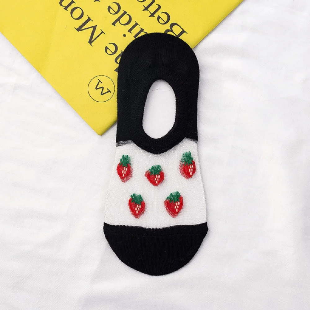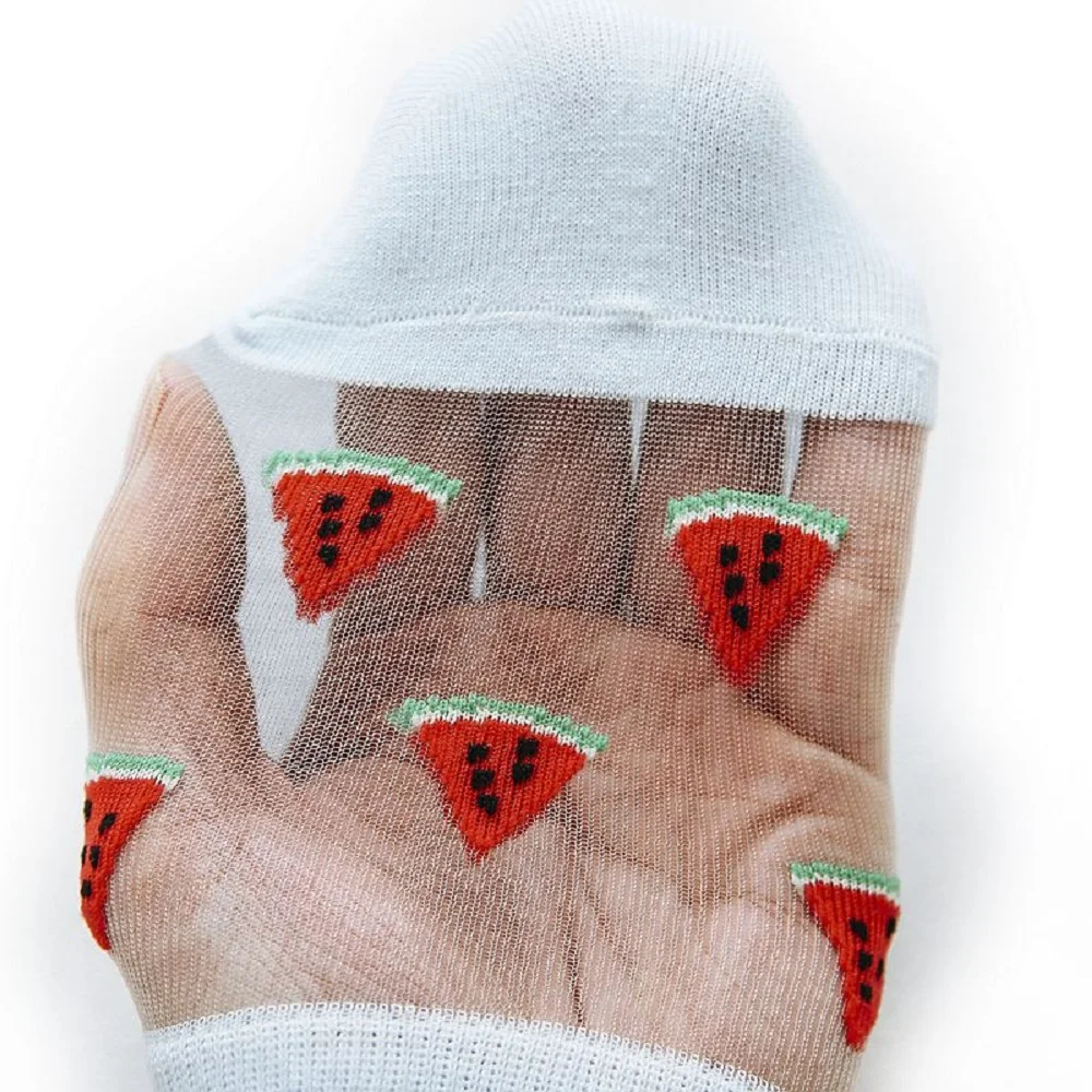 Носки женские прозрачные короткие воздухопроницаемые, повседневные модные шелковые, с фруктами, арбузом, вишней, клубникой, авокадо, Персиком, 1 пара