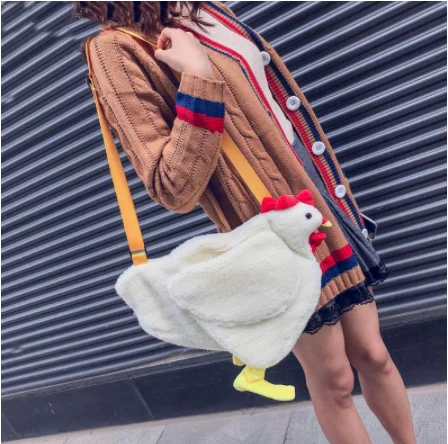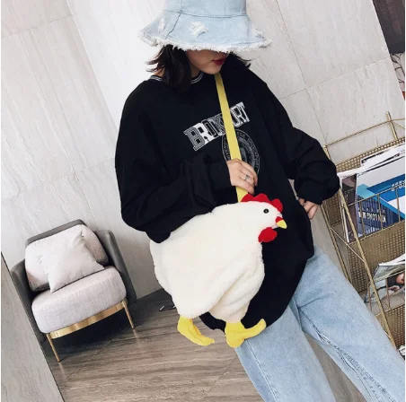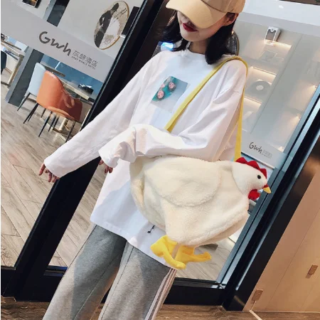 Повседневная сумка через плечо с мультяшным цыпленком, милая плюшевая сумка для девочек, модная женская сумка-мессенджер