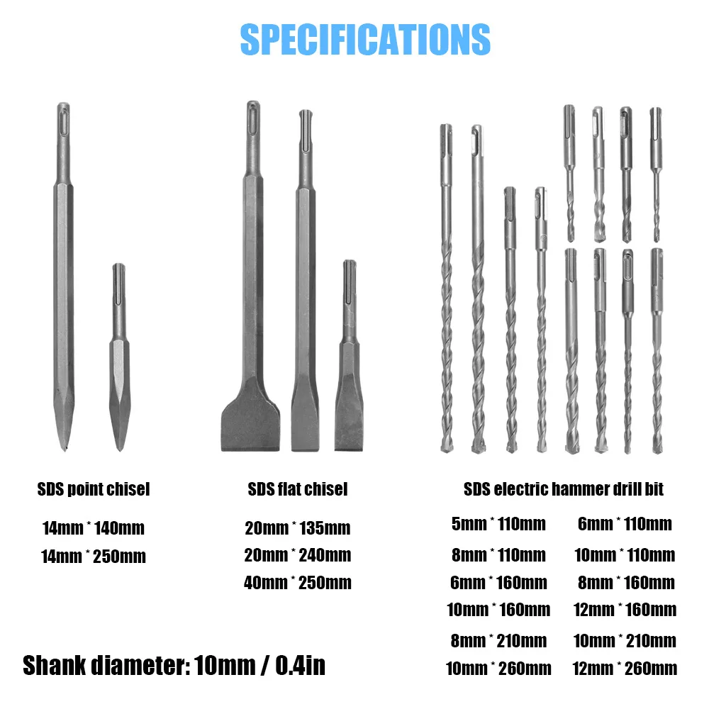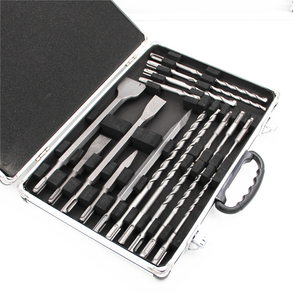 Электрическая Ударная дрель 17 шт., долото, плоское долото, набор из алюминиевого корпуса, ударная дрель для сверления отверстий в стене