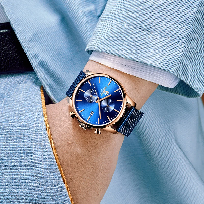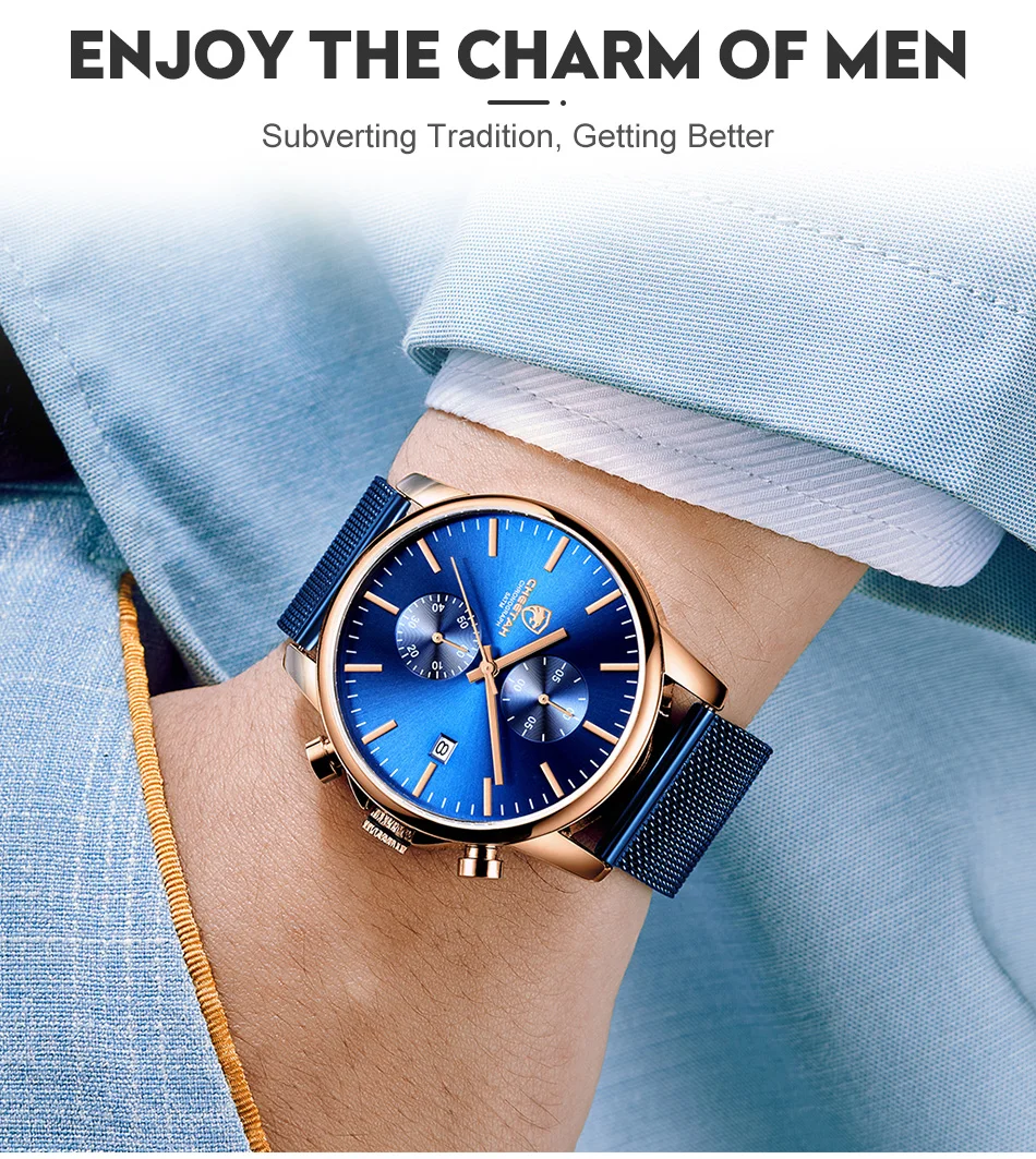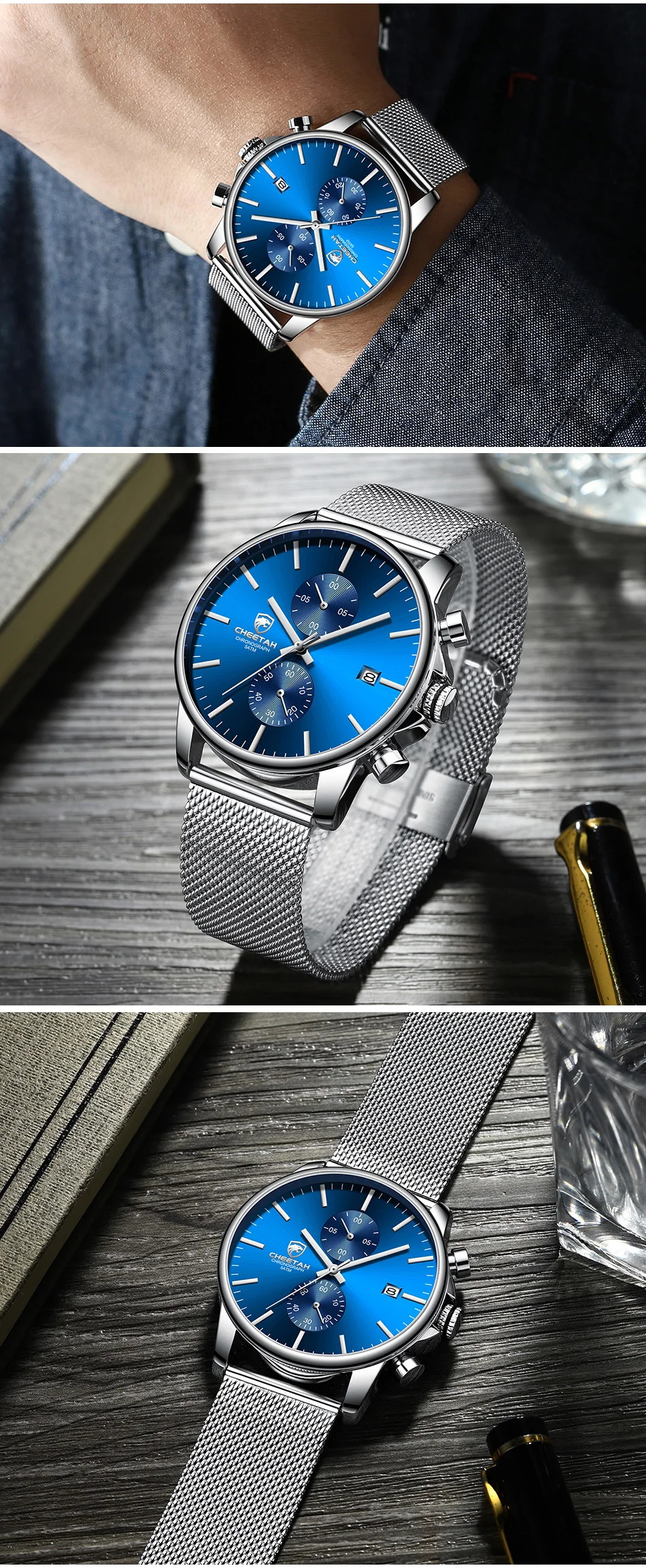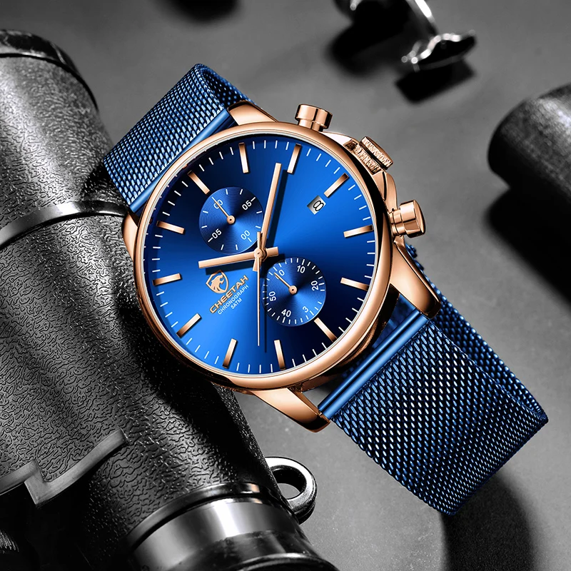 Часы мужские кварцевые, водонепроницаемые, из нержавеющей стали, с хронографом