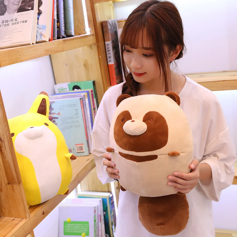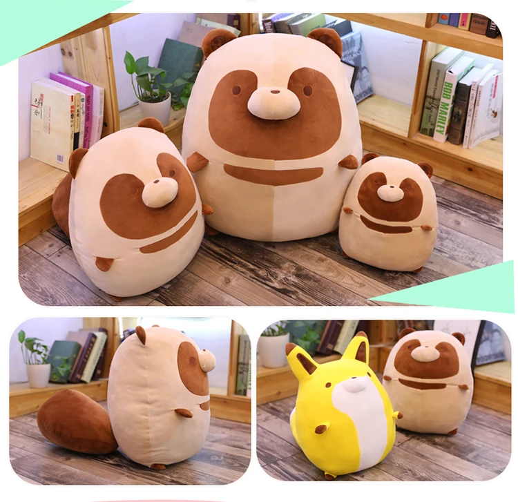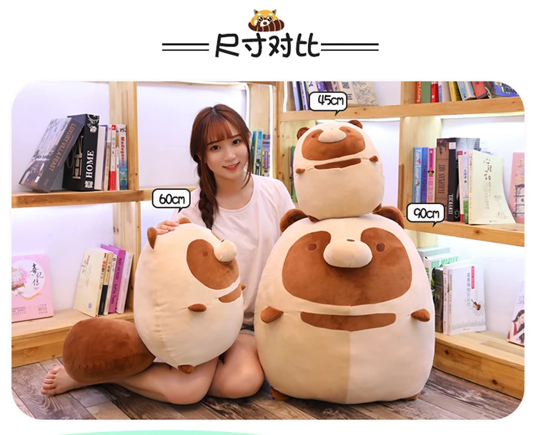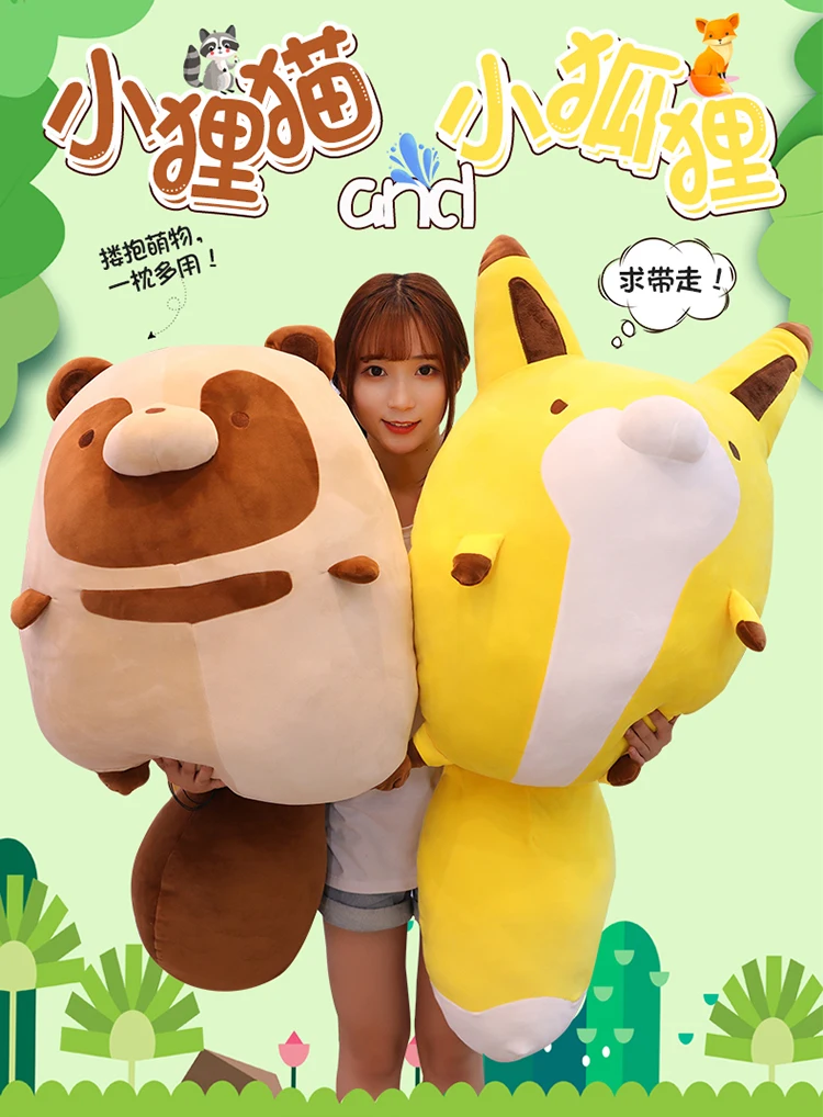 Плюшевая подушка 45-90 см, милая аниме мультяшная енот, лиса, мягкая подушка, набивные животные, детский домашний декор