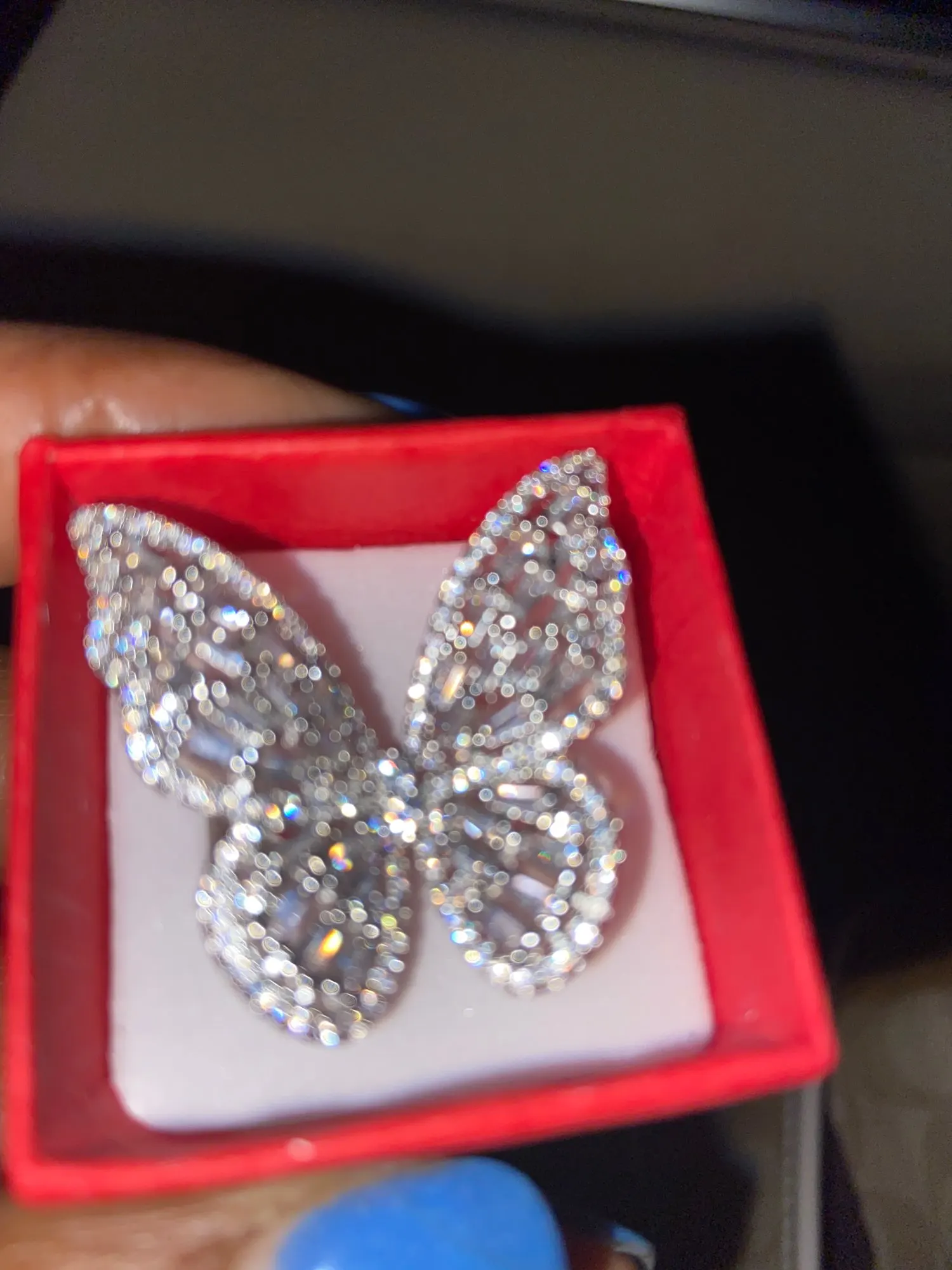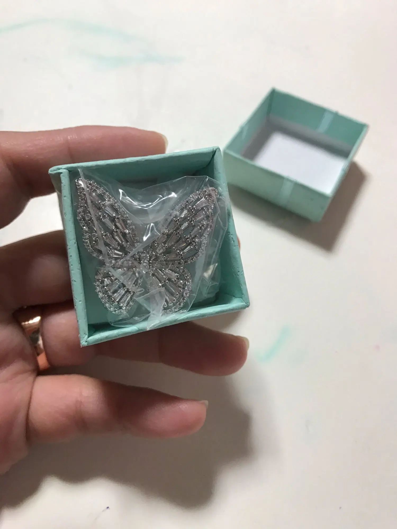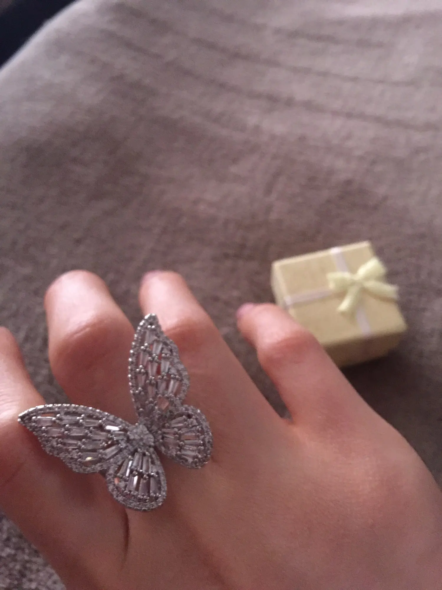 Красиво и так сверкающе! Очень доволен этим кольцом. Красиво упаковано в маленькую красную подарочную коробку. Очень крепкий на ощупь, и я уверен, что маленькие драгоценные камни легко выпадут. 10/10 будет рекомендовать