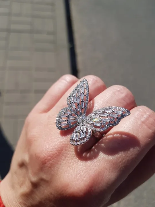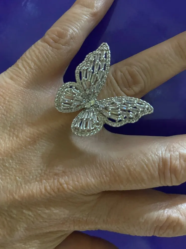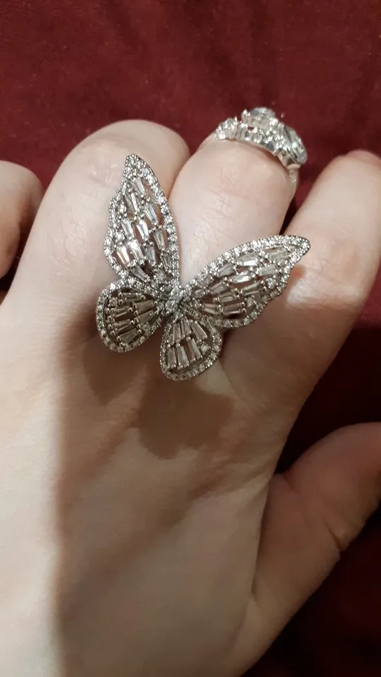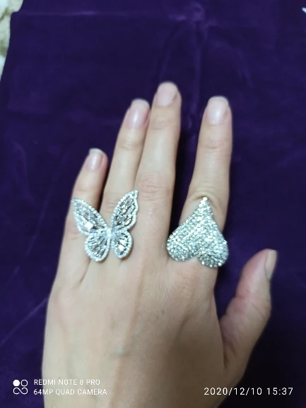 Очень красивое кольцо. Регулируется по размеру, гнётся легко кружек. Камри сверкают очень красиво. Сделаны хорошо, выглядят как люкс бижутерия. Пришли Мериме чем да месяц. Я очень довольна. Буду брать у этого продавца снова и снова.