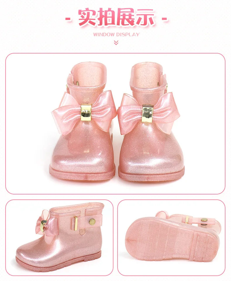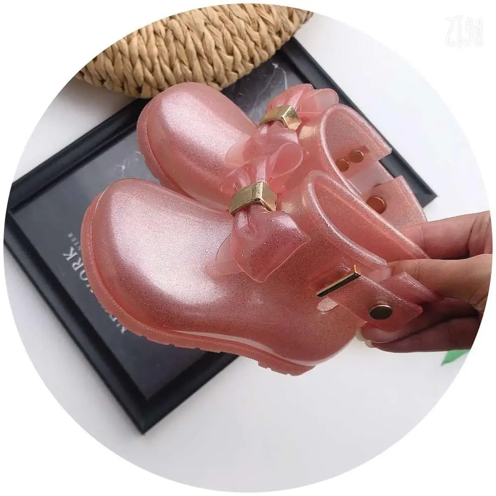 Прозрачные блестящие дождевые сапоги Mini Melissa Style для девочек, новинка 2020, непромокаемые ботинки для воды, сандалии для девочек, Водонепроницаемые дождевые сапоги