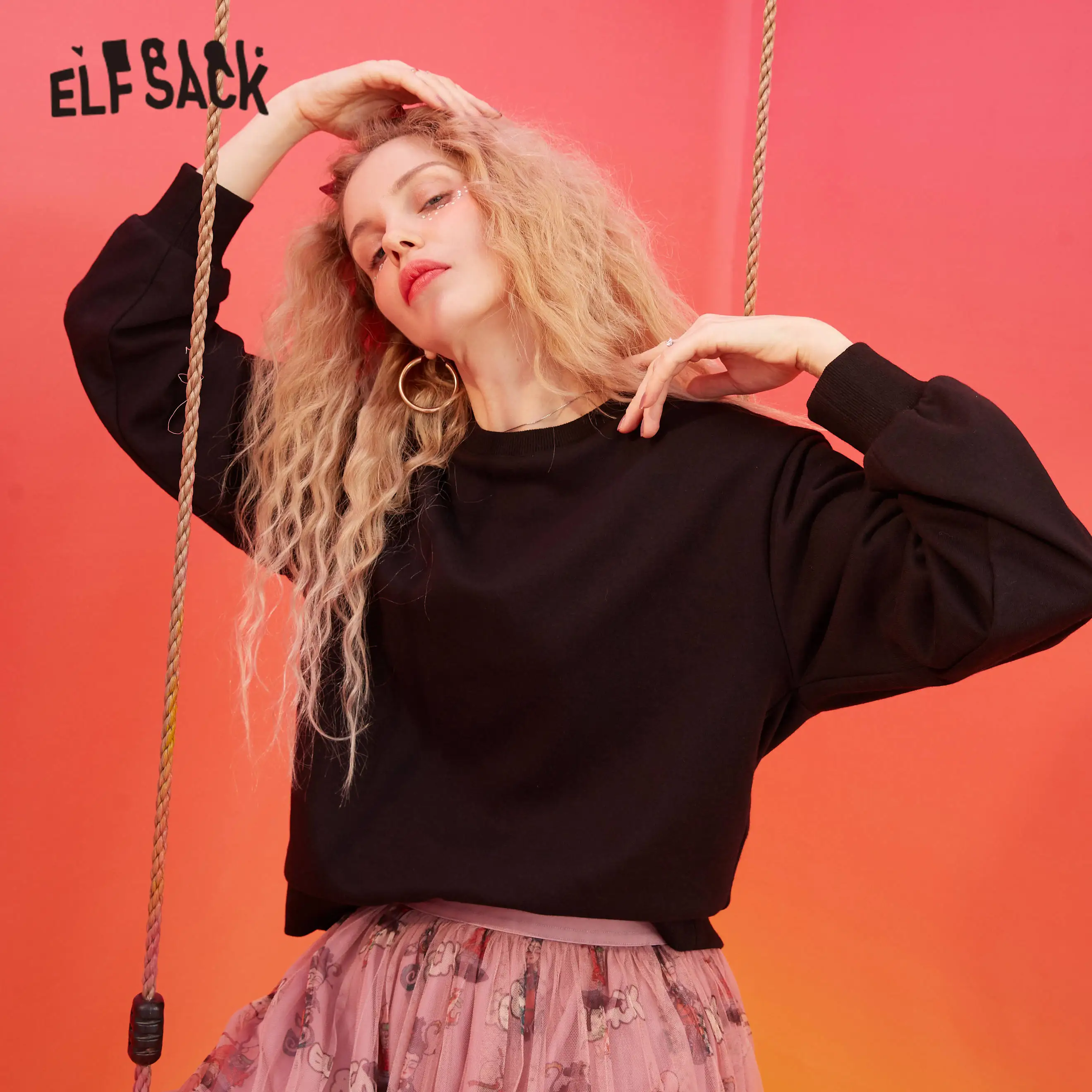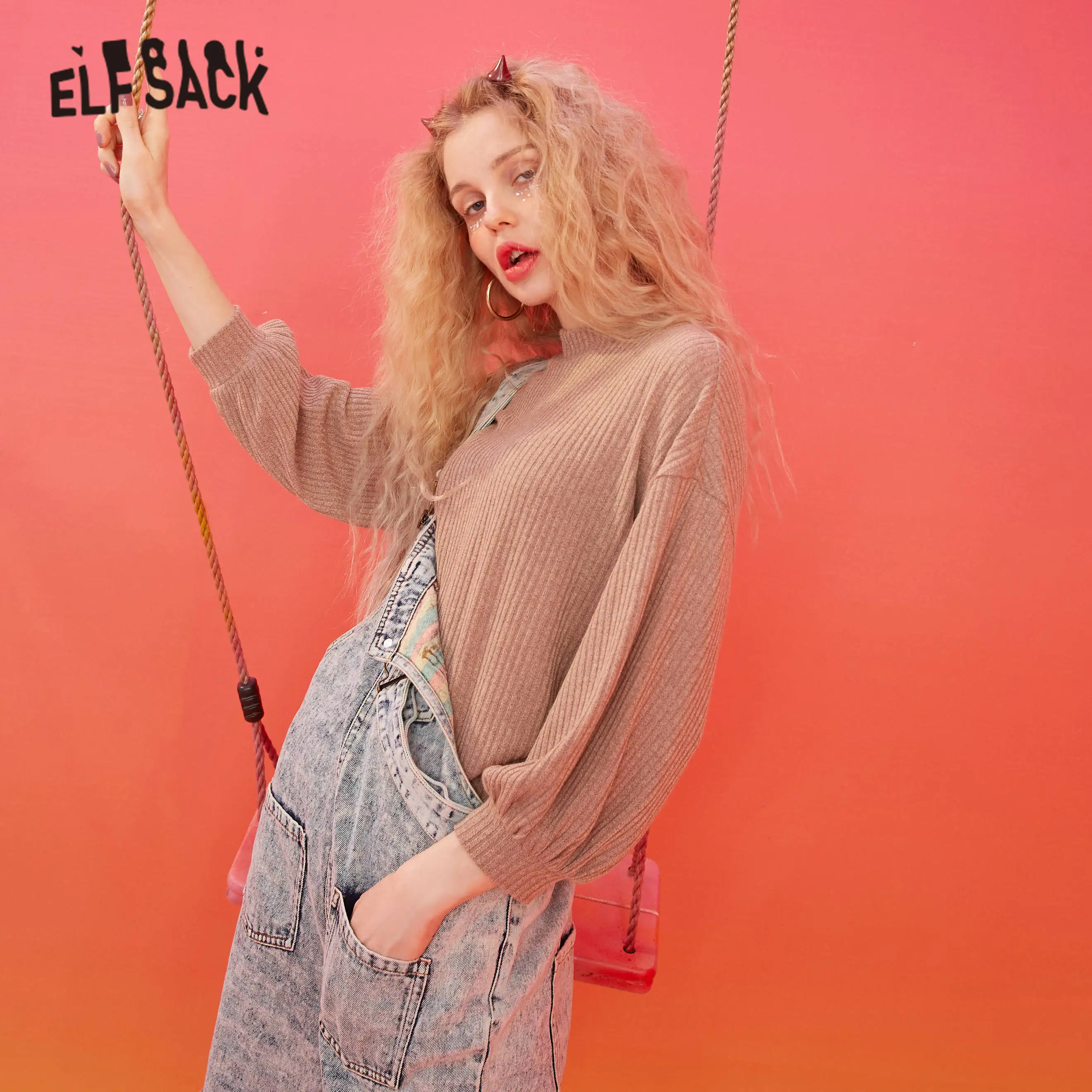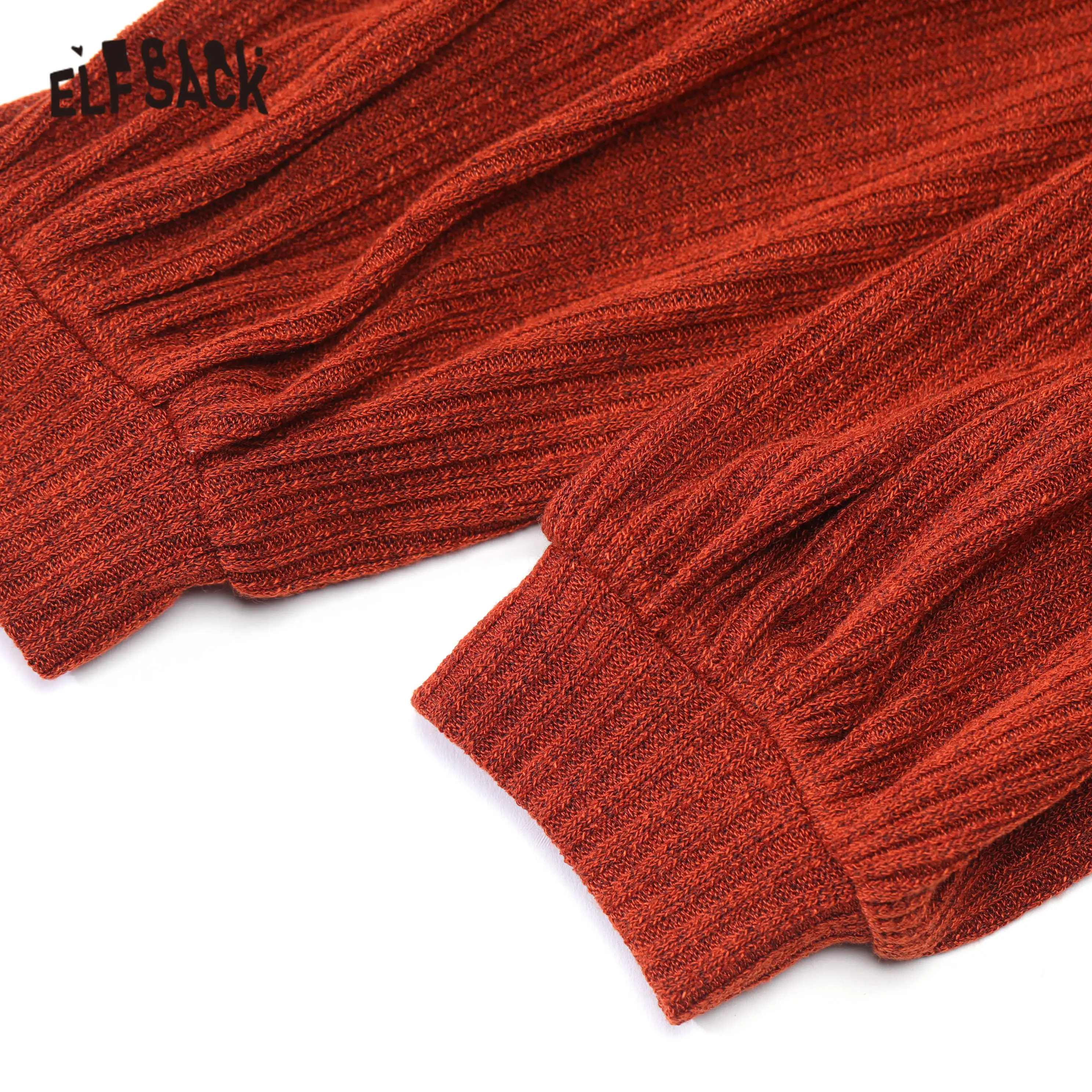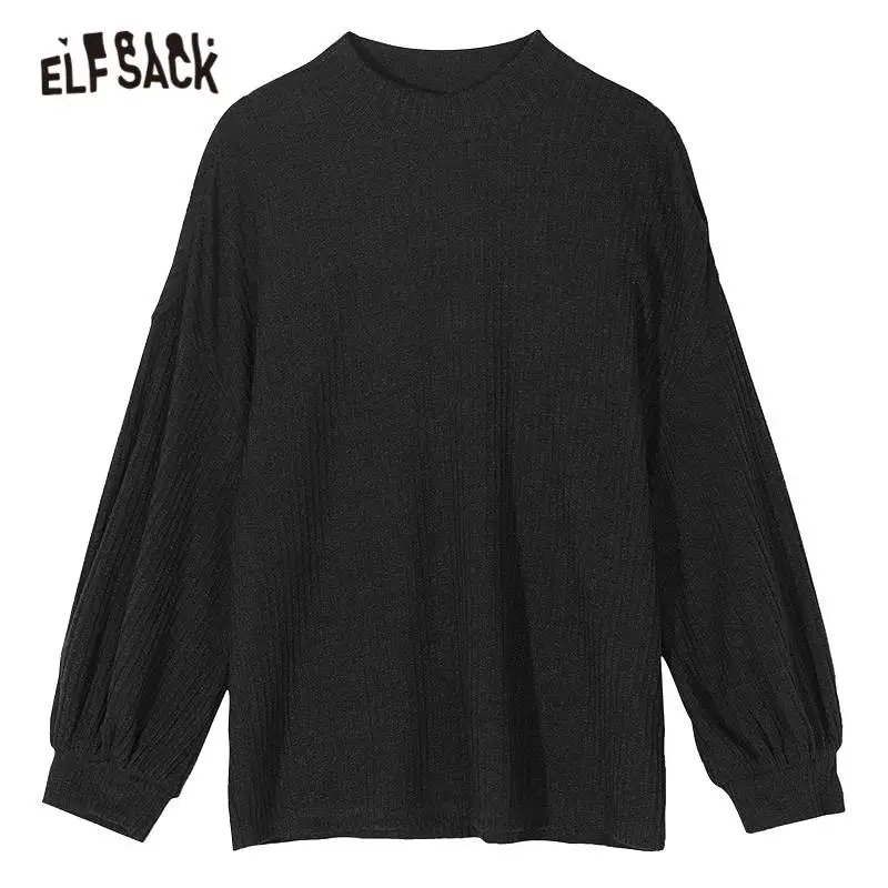 Женский Повседневный вязаный пуловер ELFSACK, черный Однотонный свитер с рукавами-фонариками в стиле минимализма, весна 2020