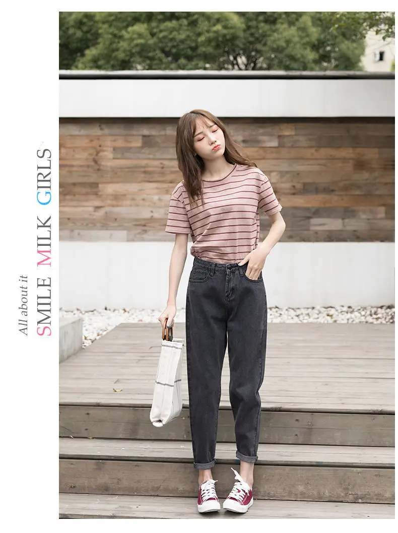 Джинсы женские, черные, в Корейском стиле, весна-лето