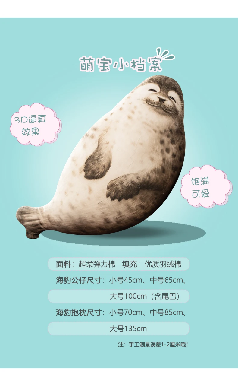 Игрушка плюшевая, круглая, супер мягкая, 2020, Подушка-тюлень