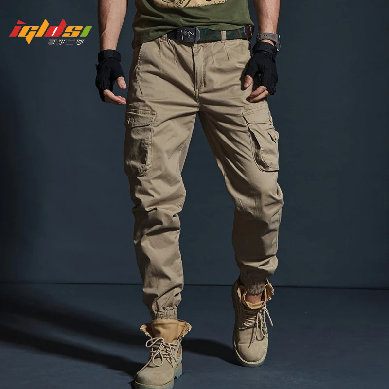Мужские тактические брюки-карго в стиле милитари, камуфляжные брюки с несколькими карманами, модные черные армейские длинные брюки, мужские повседневные брюки-карандаш