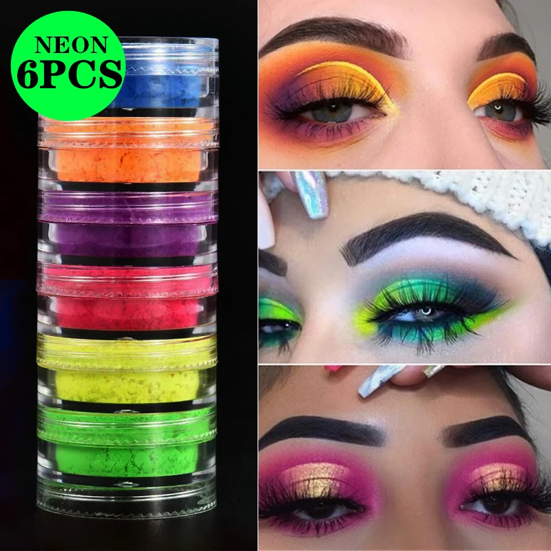6 шт., неоновые тени для век