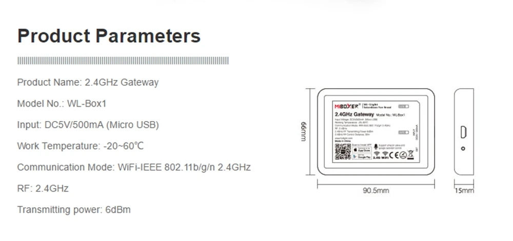 WL-Box1 WI-FI светодиодный контроллер Miboxer Беспроводной 2,4 ГГц ...