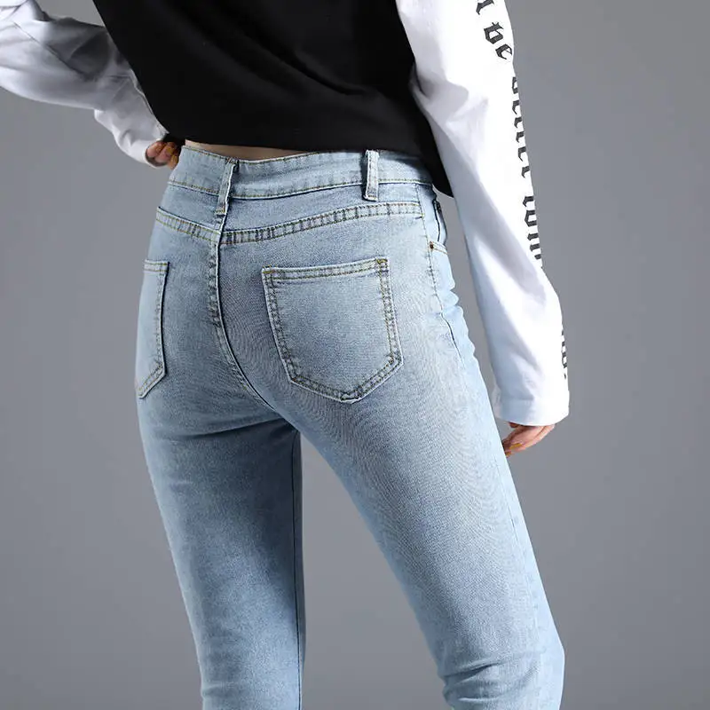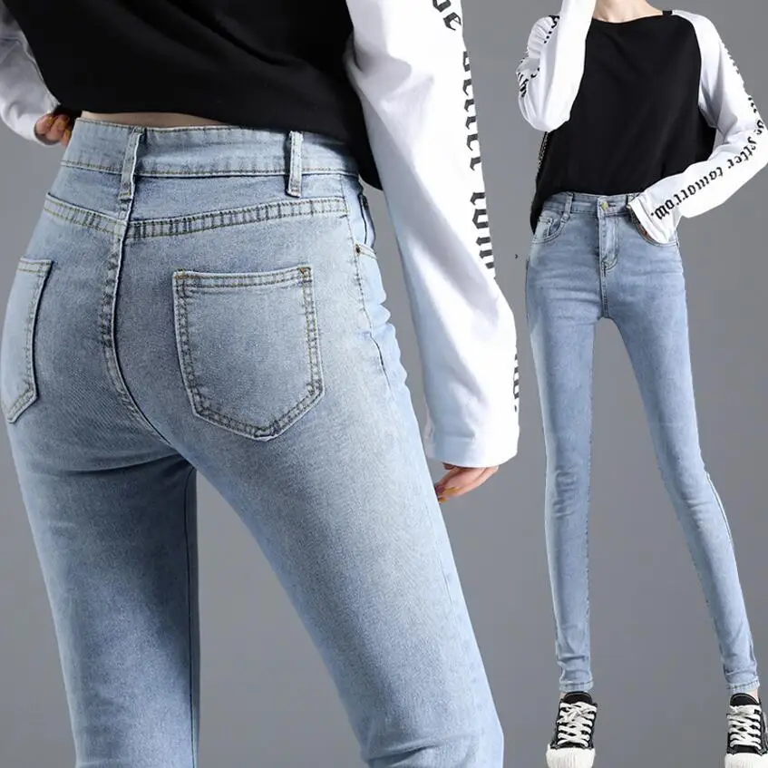 Винтажные синие джинсовые брюки, женские узкие модные облегающие узкие джинсы с высокой талией, эластичные Простые Классические Брюки-Карандаш для подростков